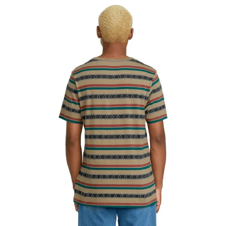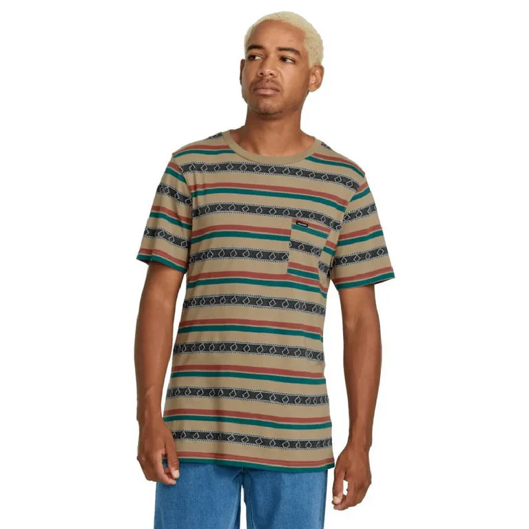 The Volcom Taction Short Sleeve Shirt combines understated elegance with practical design elements. Its contemporary silhouette features a functional left chest pocket and distinctive yarn-dyed stripe jersey construction. The bias neck tape enhances comfort while maintaining fabric consistency. Crafted from pure cotton, this garment balances casual versatility with refined details, including the signature woven Volcom label. The fine stripe texture elevates this essential piece beyond ordinary casual wear, offering both durability and sophisticated styling.