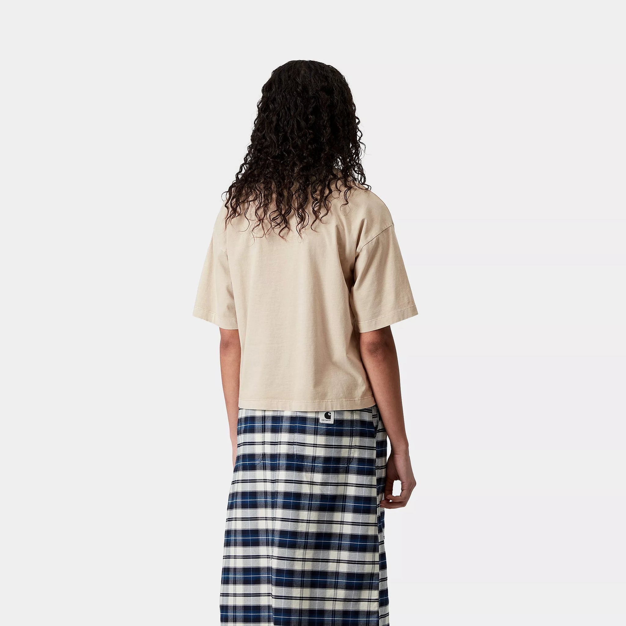 La Women’s S/S Nelson T-Shirt è un modello di taglio corto realizzato in leggero jersey di cotone biologico e caratterizzato da vestibilità ampia. Il modello è stato tinto in capo per una maggiore morbidezza e una colorazione più articolata. Sulla sinistra del petto campeggia un’etichetta quadrata in tessuto, colorata dal processo di tintura.