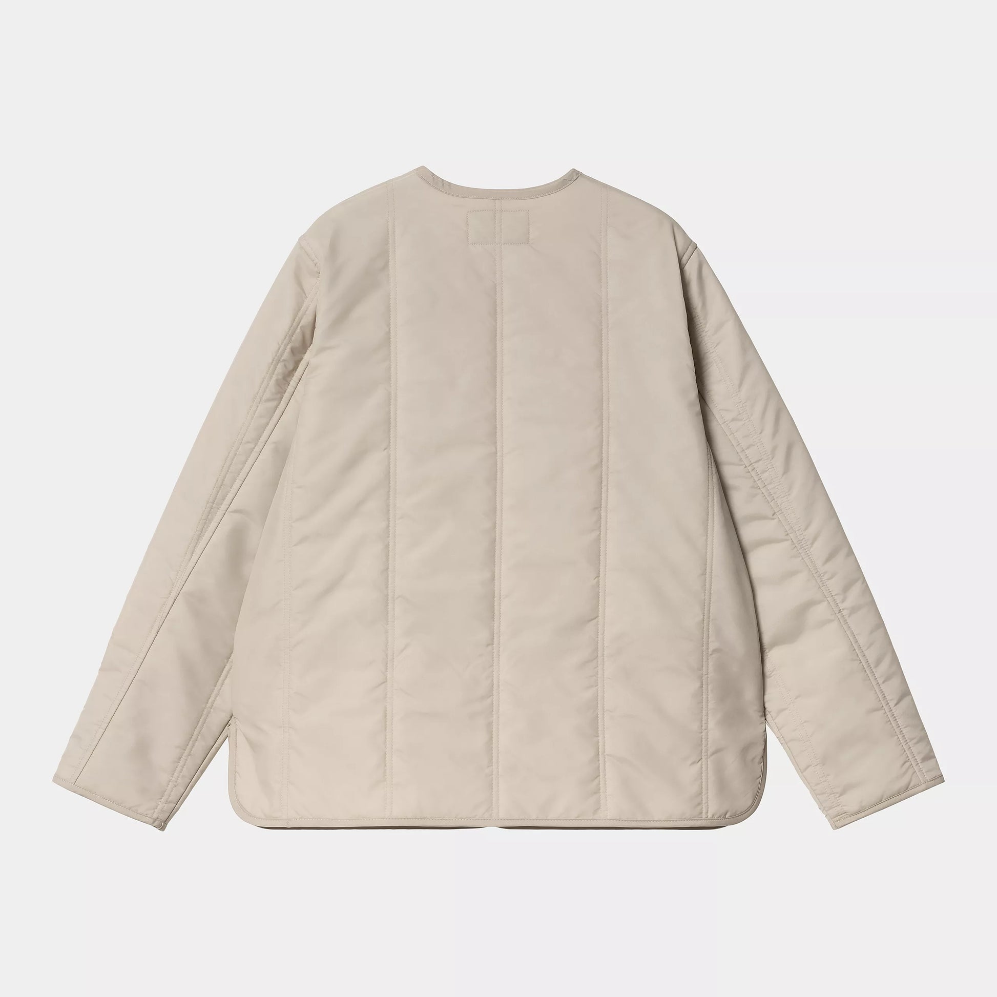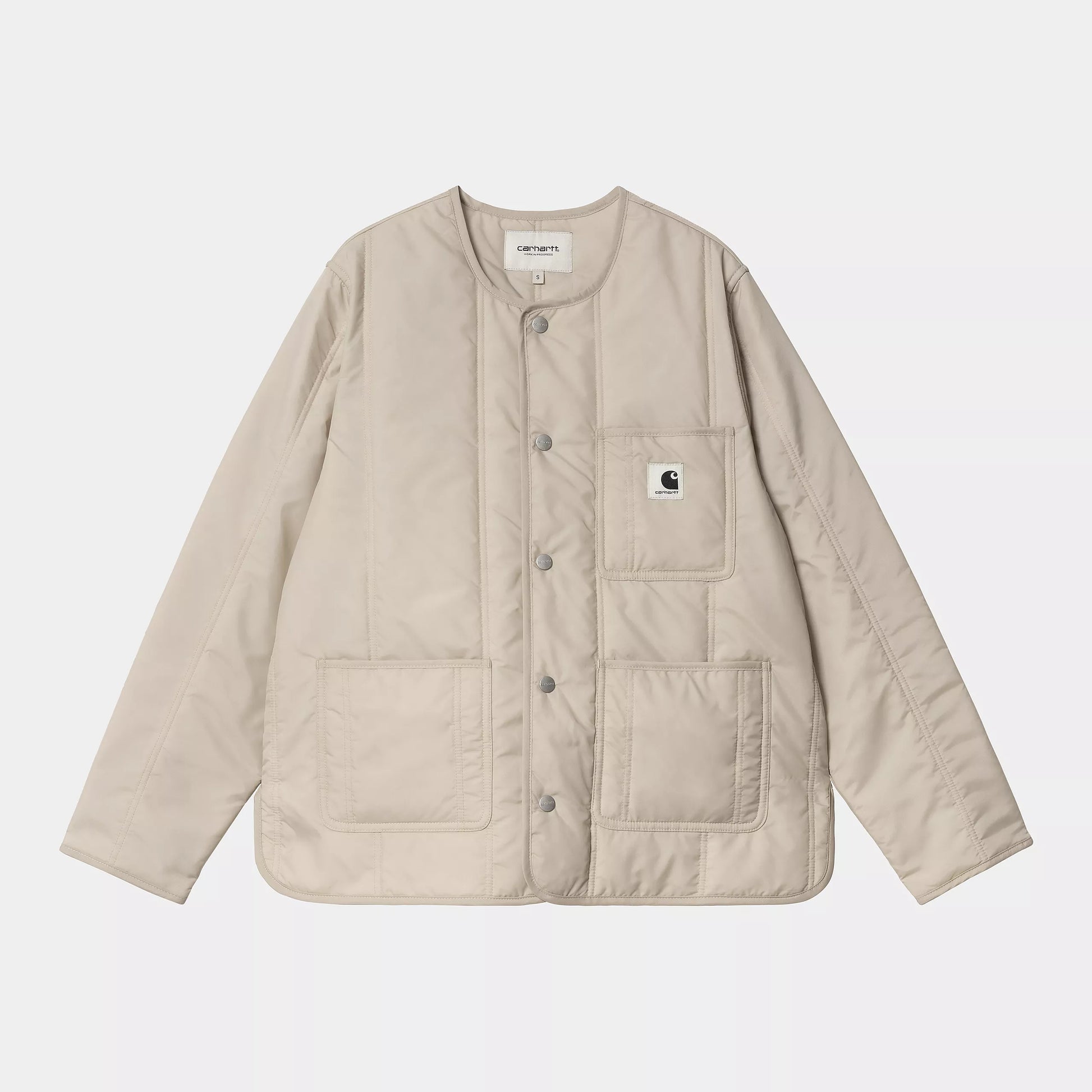 La Women’s Kyla Liner è realizzata in leggero nylon e presenta una fodera matelassé verticale. Il capo è caratterizzato da tre tasche sul davanti, una delle quali è impreziosita da un’etichetta quadrata in tessuto.