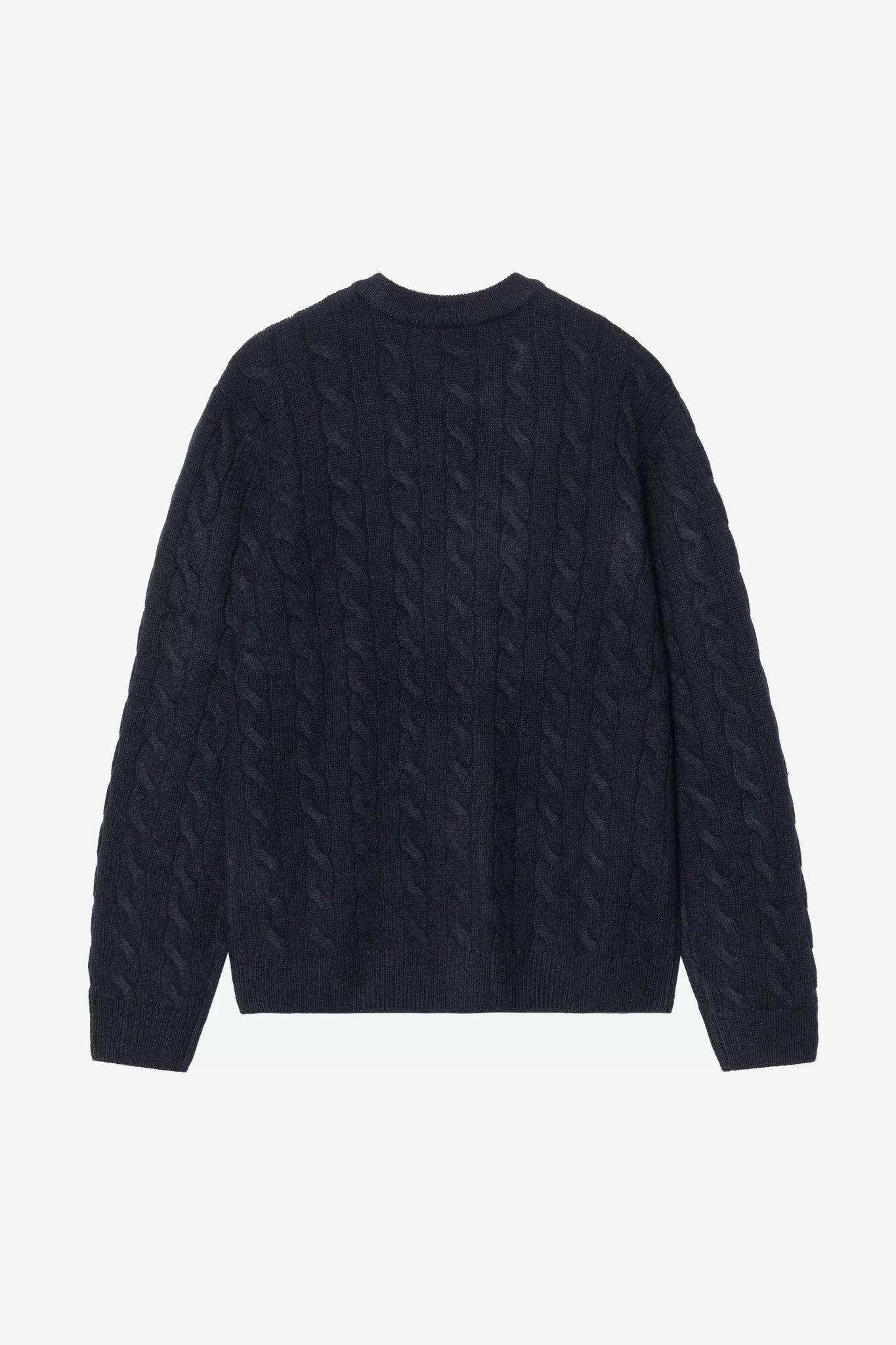 La Signature Sweater è una pesante maglia con motivo a trecce realizzata in un misto di lana di agnello. Sul petto campeggia un ricamo grafico.
