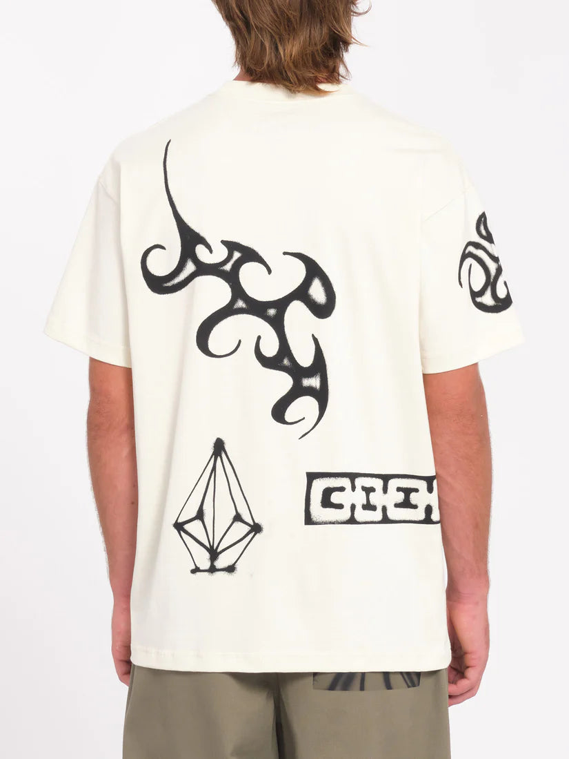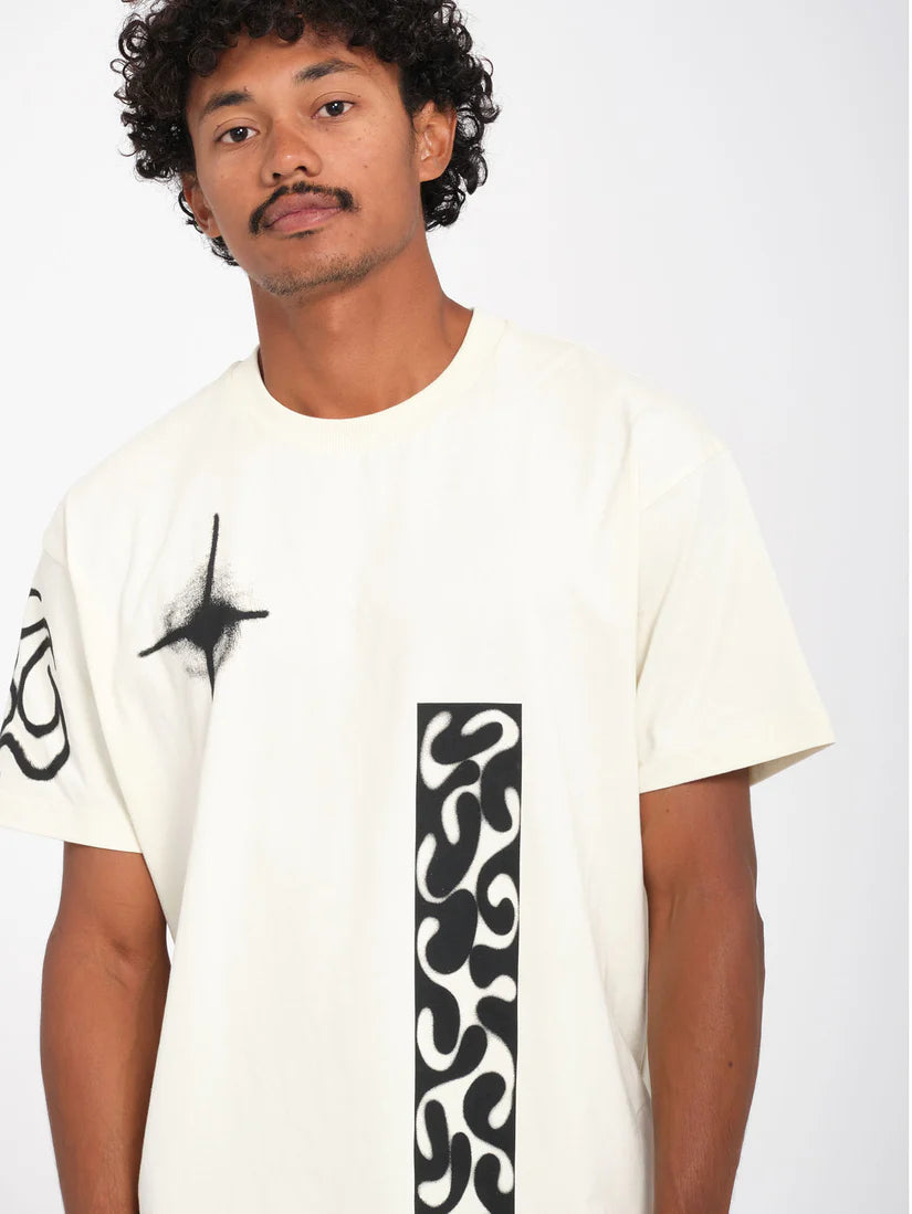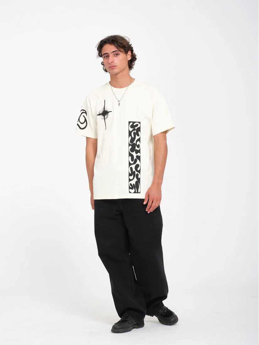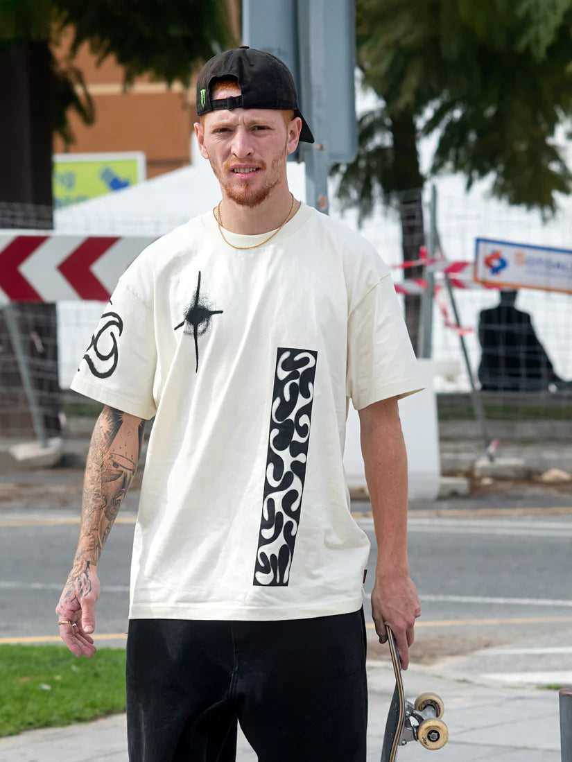 Featuring a special placements screenprint designed by Zephyr, this men's short sleeve tee boasts a loose fit and round collar. Made from 100% organic cotton weighing 230g, this tee is a must-have for those seeking a comfortable and environmentally-friendly option.