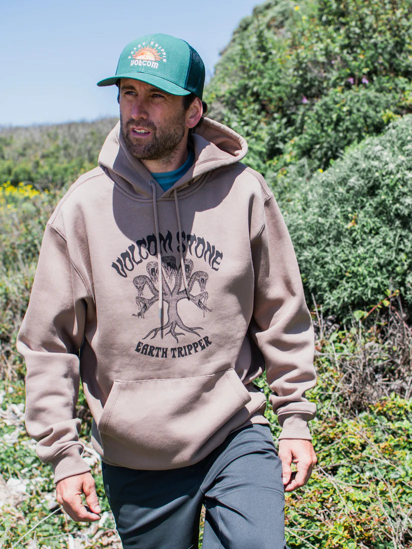 Experience unbeatable comfort with the Volcom Watanite Pullover Hoodie. This men's fleece hoodie is made with a soft, brushed material and features a classic fit, front and back screenprint, and Volcom branded metal trims. Stay warm and stylish with the front pouch pocket and the hoodie's weight of 330g. Plus, feel good knowing this hoodie is made with at least 15% recycled polyester.