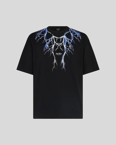 BLACK T-SHIRT WITH BLUE GREY LIGHTNING