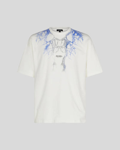 WHITE T-SHIRT WITH BLUE GREY LIGHTNING