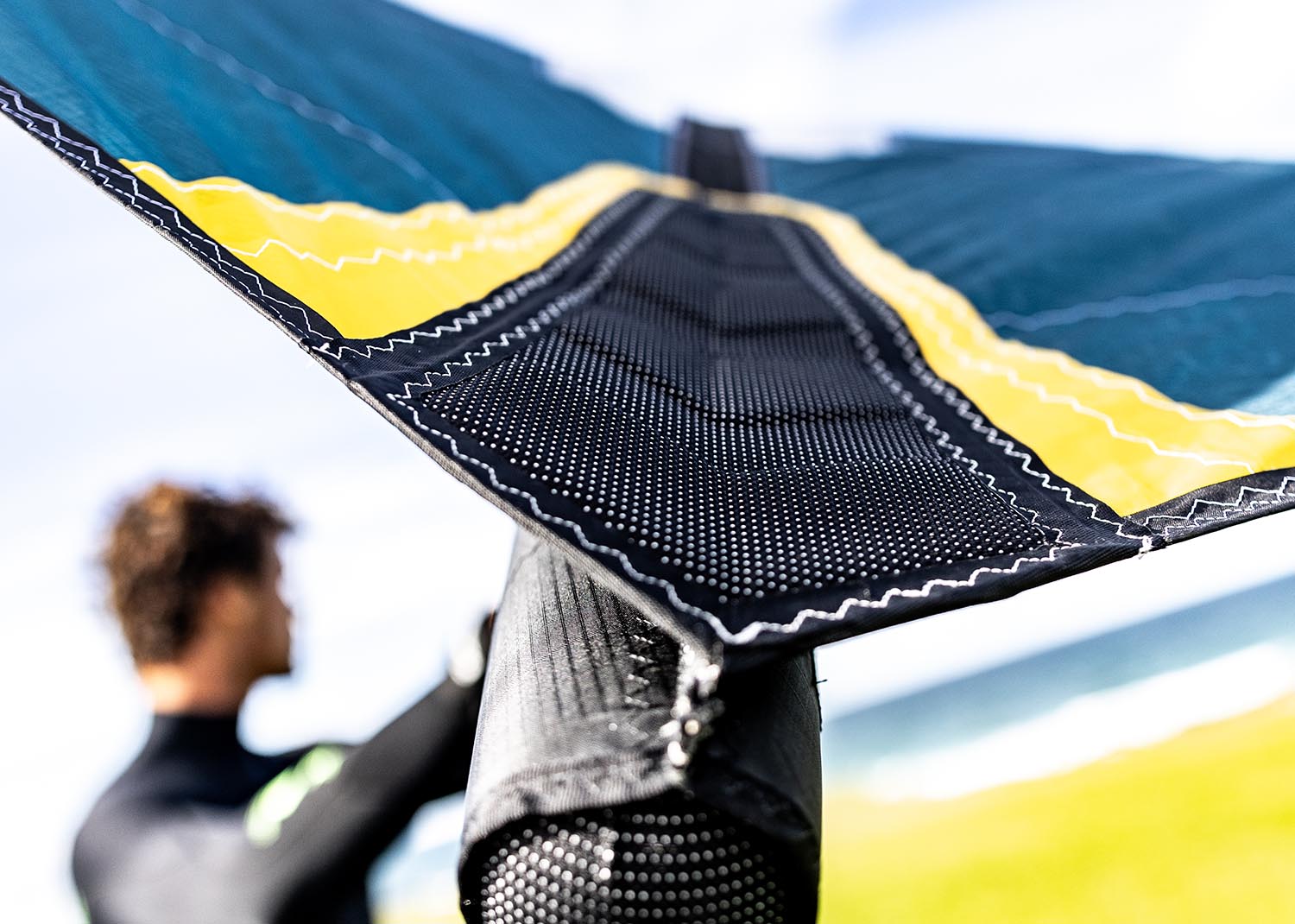 The TE load distributor increases wing durability while robustly helping distribute wing tension throughout the trailing edge. The abrasive material stops scuffing while the wing rests on land.