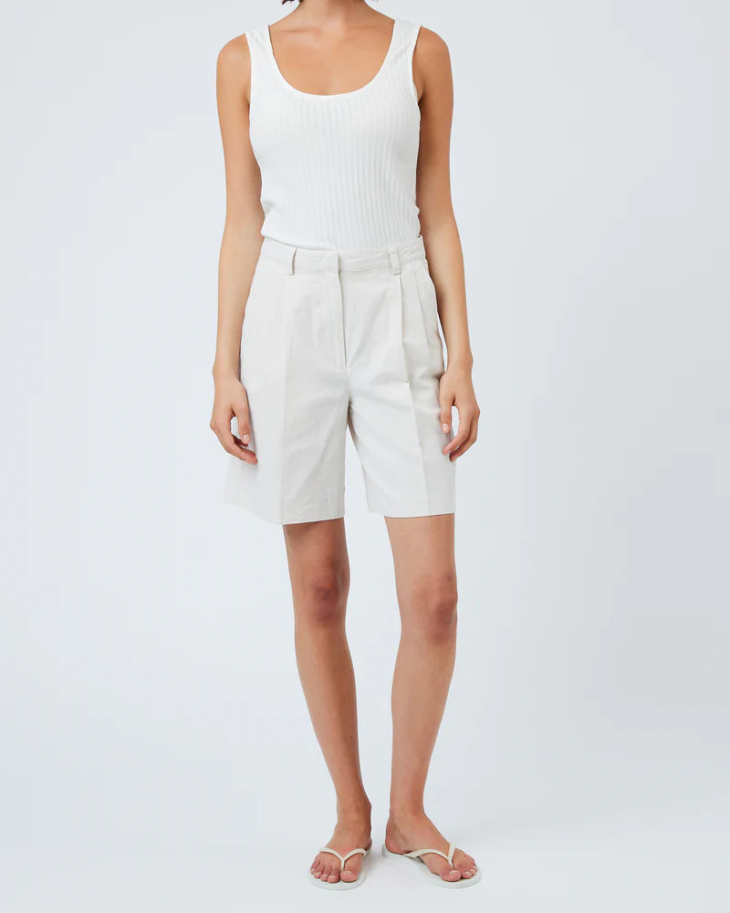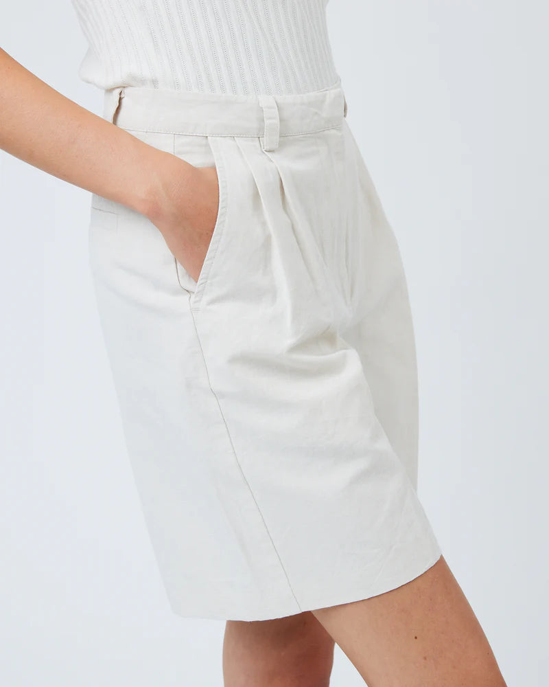 Debas are a pair of pleated shorts made from cotton and linen for a comfortable quality. The shorts have a regular fit and are designed with a high waist, two side pockets, belt loops and a zip closure. The model is 180 cm tall and wears a size 36.