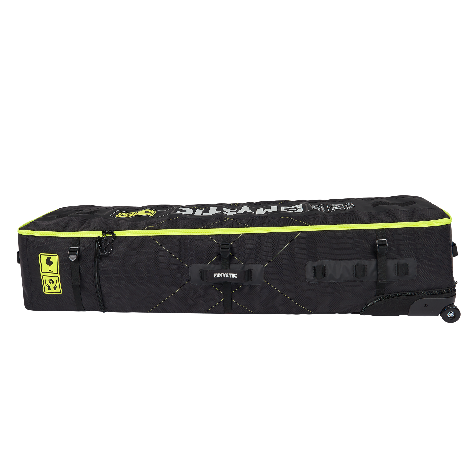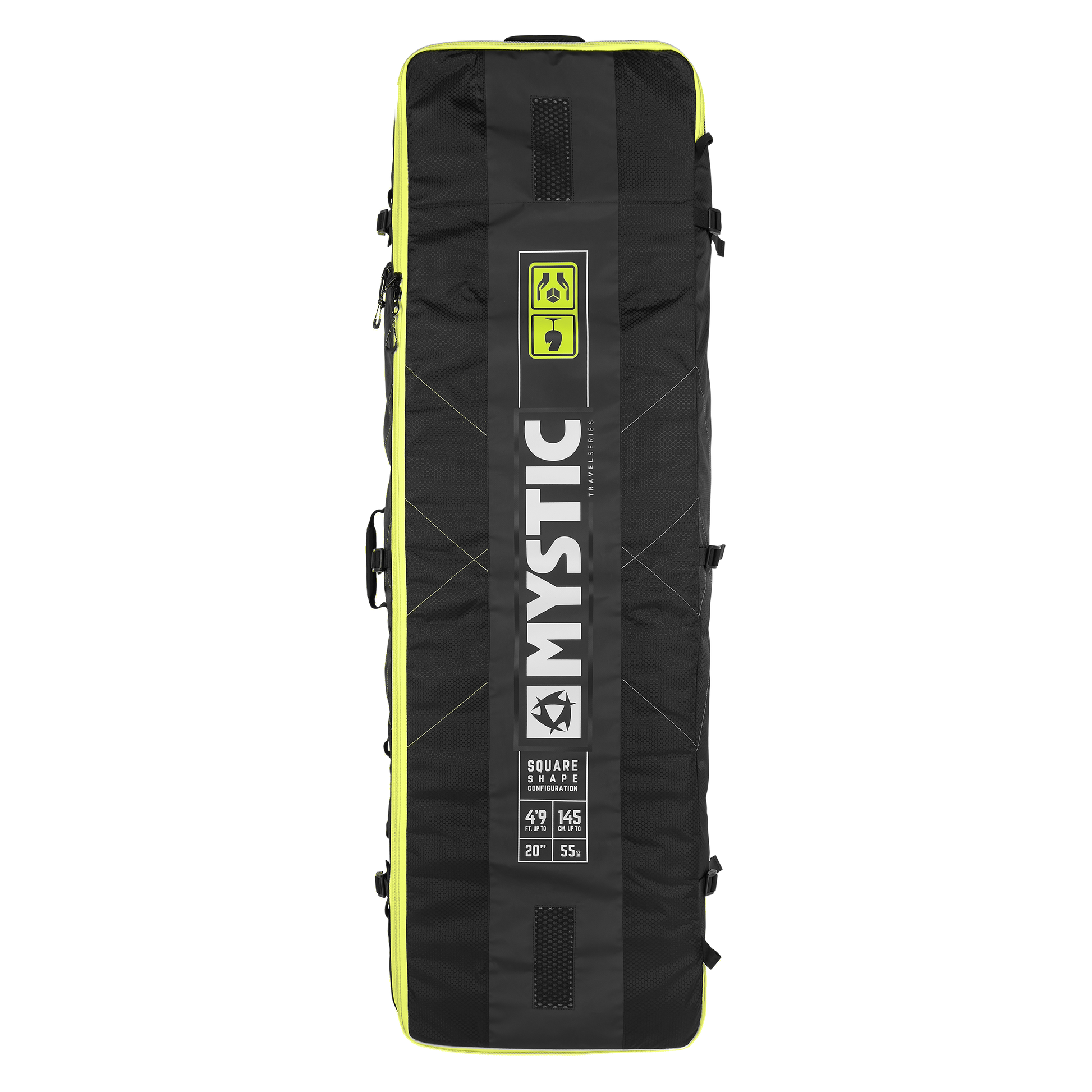 Want to make to most of your available kg's? The Elevate square is our lightweight boardbag with detachable wheels to save even more weight when needed! The outside is constructed with HXcomb Shell Ultra, heavy duty tarpaulin on the inside combined with protective padding on the critical parts to keep your gear safe. It's packed with extra features like the 3D mesh airvent, keep your gear fresh for when you did a last minute sesh before you hit the airport. Two transparent inner pockets for your screw and fins. When you're back home it's easily foldable to a small package for easy storage waiting on your next trip!