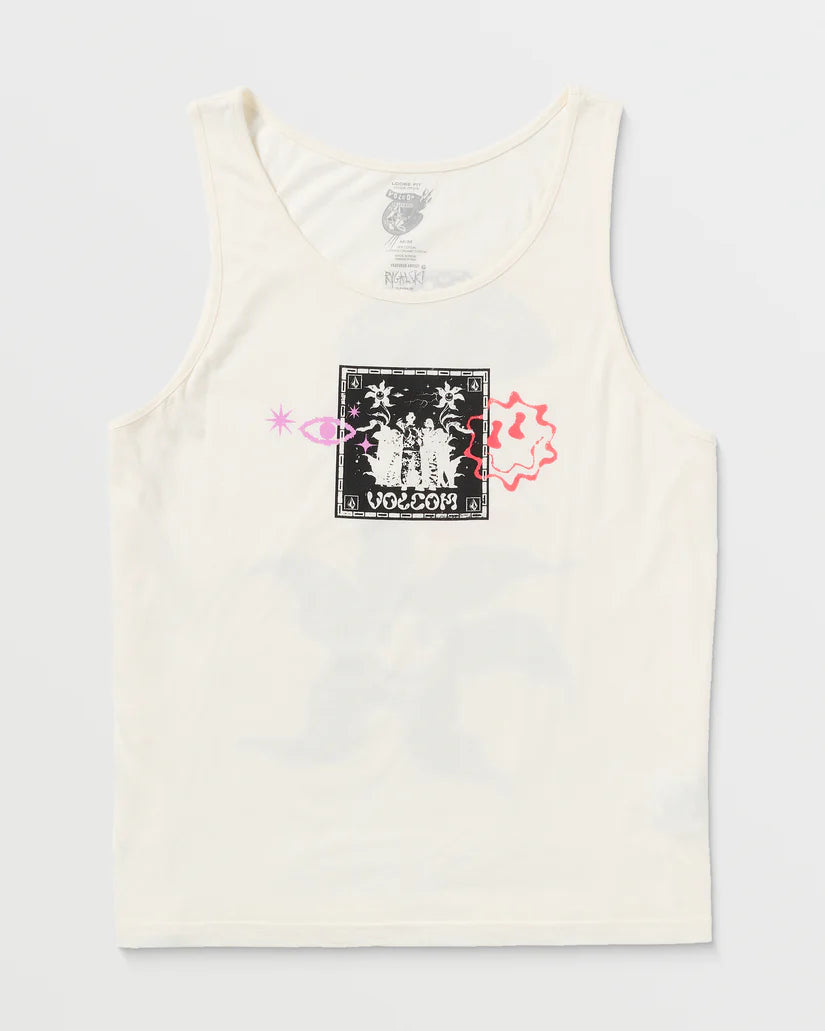 Premium ring spun cotton blend offers a soft, lived-in feel. Loose fit tank with a stylish screen print graphic (Rygalski art). Finished with a bound neck/arms and interior neck label.