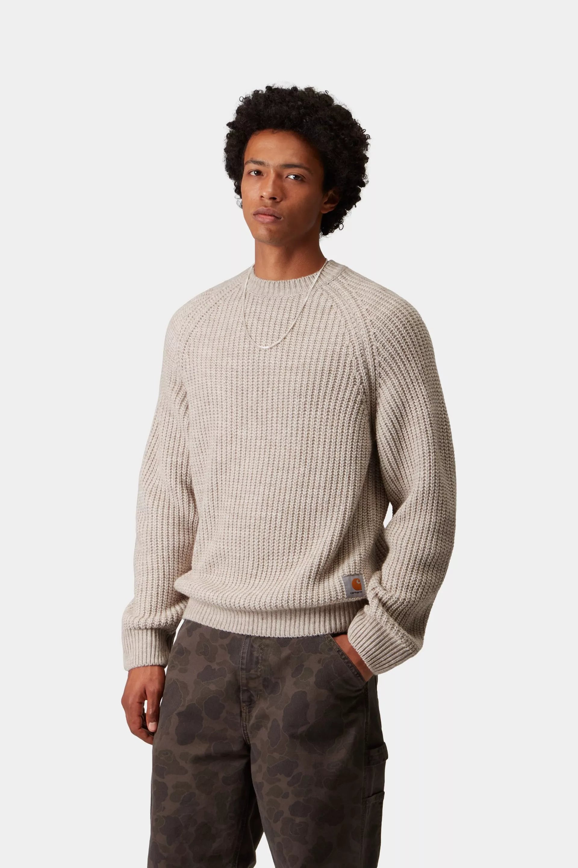 La Firth Sweater è realizzata in un filato misto naturale e sintetico. La maglia presenta manica raglan ed è impreziosita da un’etichetta quadrata in tessuto in corrispondenza dell’orlo.