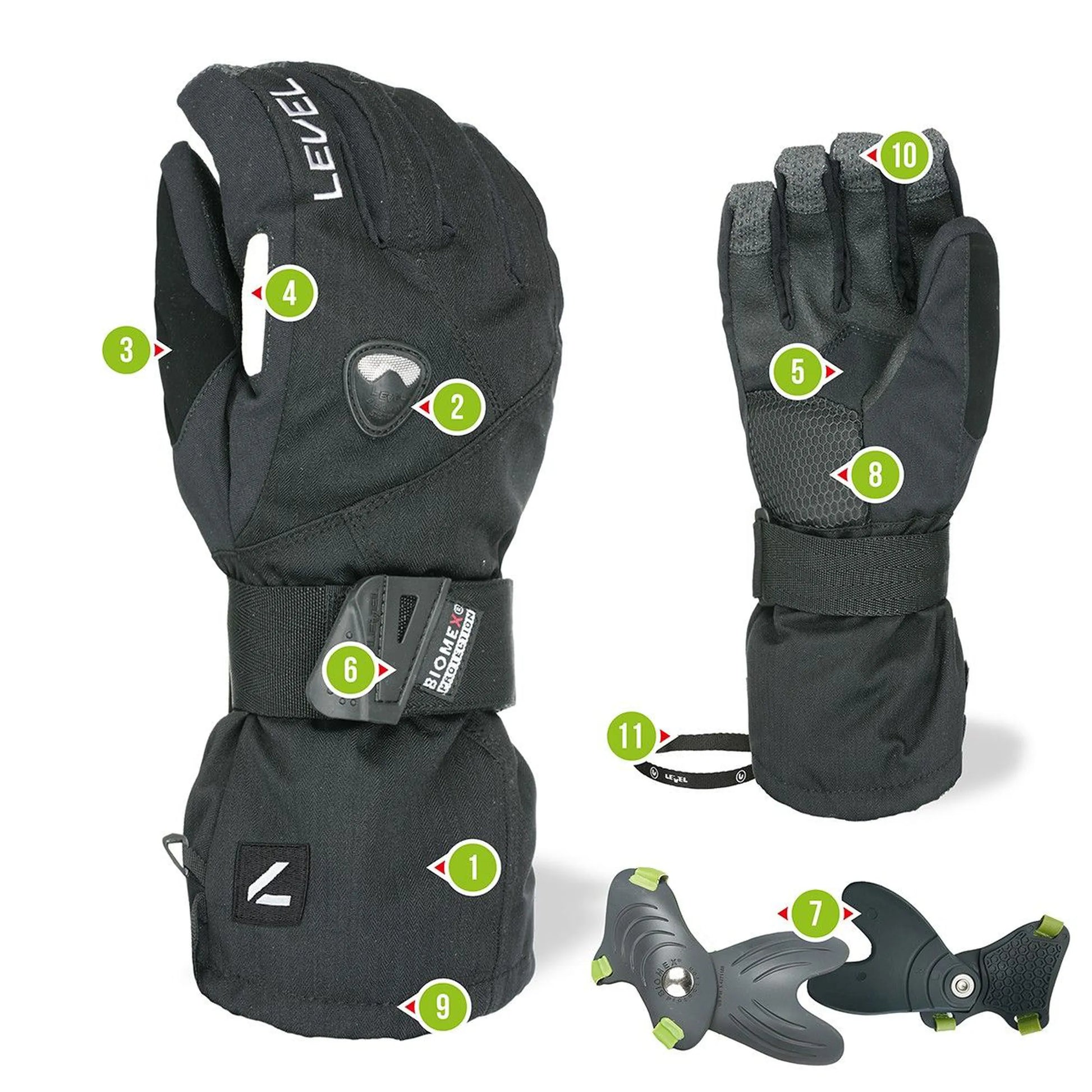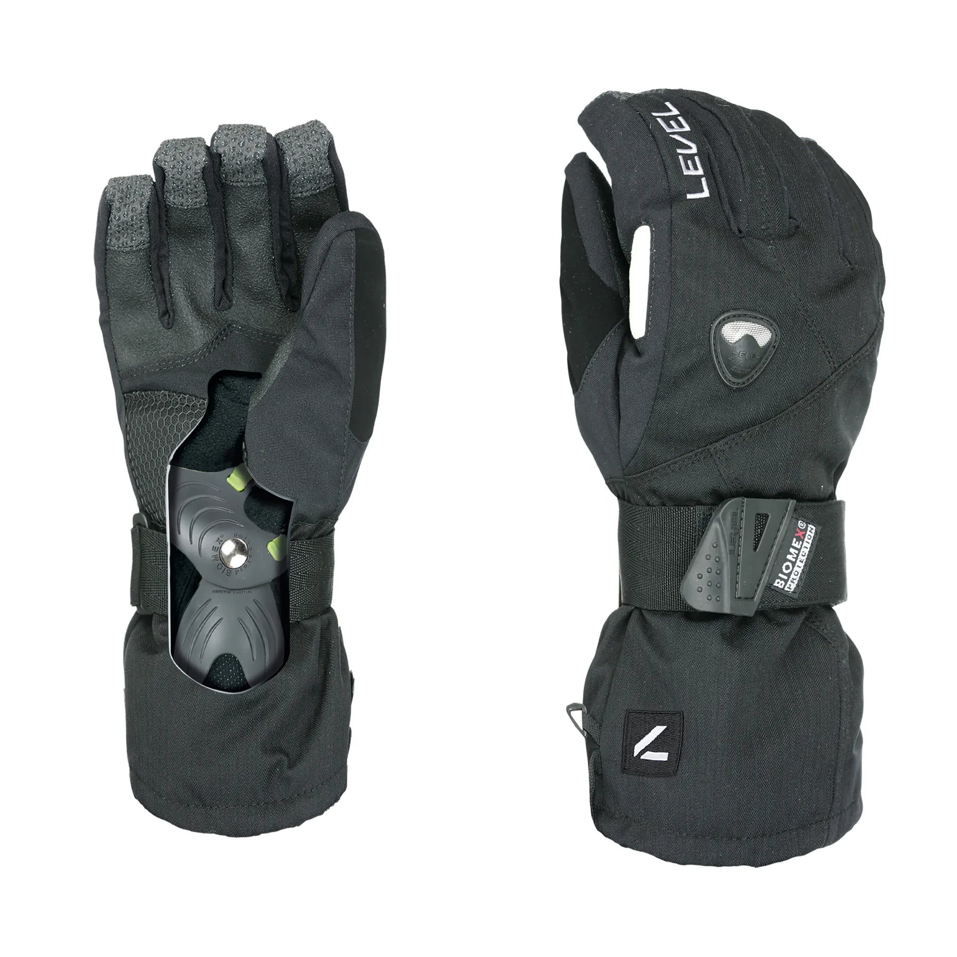 Cadute ed infortuni sono parte della carriera professionale di tanti snowboarder. Per preservare i polsi degli atleti, Level ha sviluppato un guanto con protezione integrale per sciare in totale sicurezza. Il sistema Biomex Protection è inserito all’interno della parte inferiore del guanto e, tramite la sua tecnologia, protegge il polso dagli shock provenienti da tutte le direzioni. Questo modello impermeabile, grazie al trattamento dei tessuti, prevede anche un rinforzo esterno in Kevlar per garantire resistenza alle abrasioni. Inoltre, il sistema Level Membra-Therm Plus garantisce un’eccezionale resistenza all’acqua. Il polsino regolabile lo rende perfetto da indossare sotto la giacca da sci, mentre il cordino elastico evita l’ingresso di aria fredda e neve all’interno del guanto.