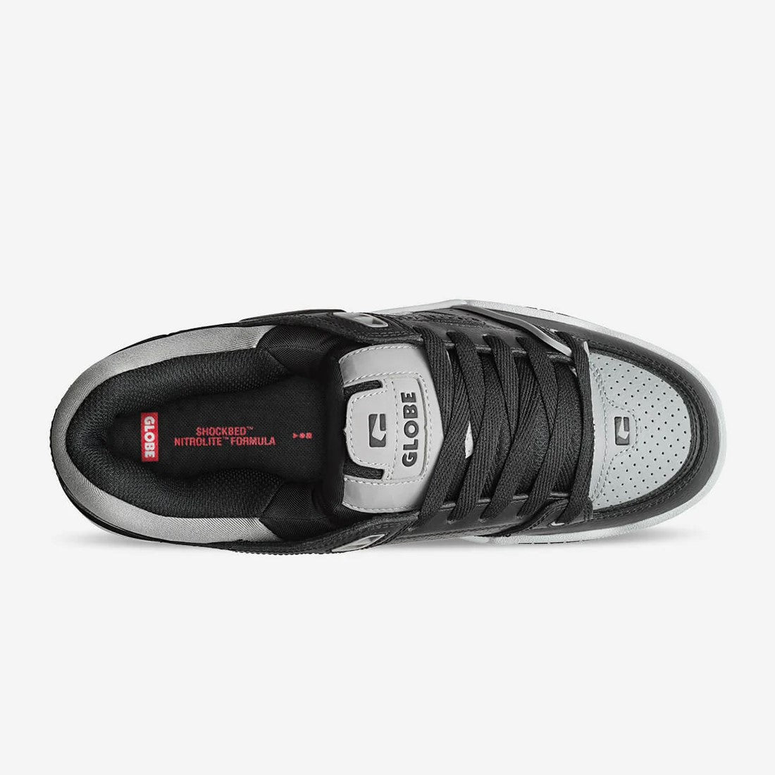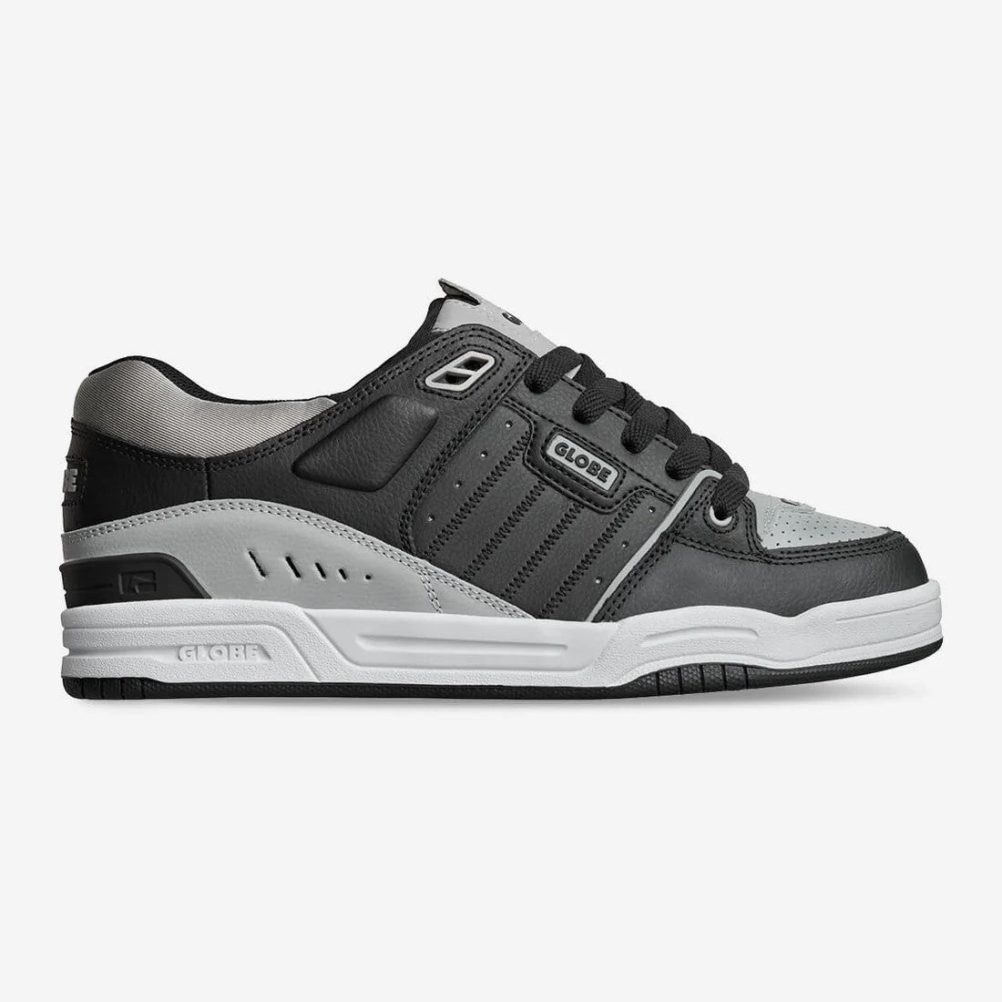 The Fusion in Black/Steel/White is a rugged, fully padded skate shoe, with a slip on sock construction for comfort and added stability. Featuring a step-in sock, TPR ollie reinforcement, Globe's S-Trac™ sole pattern and TPR heel stabiliser.