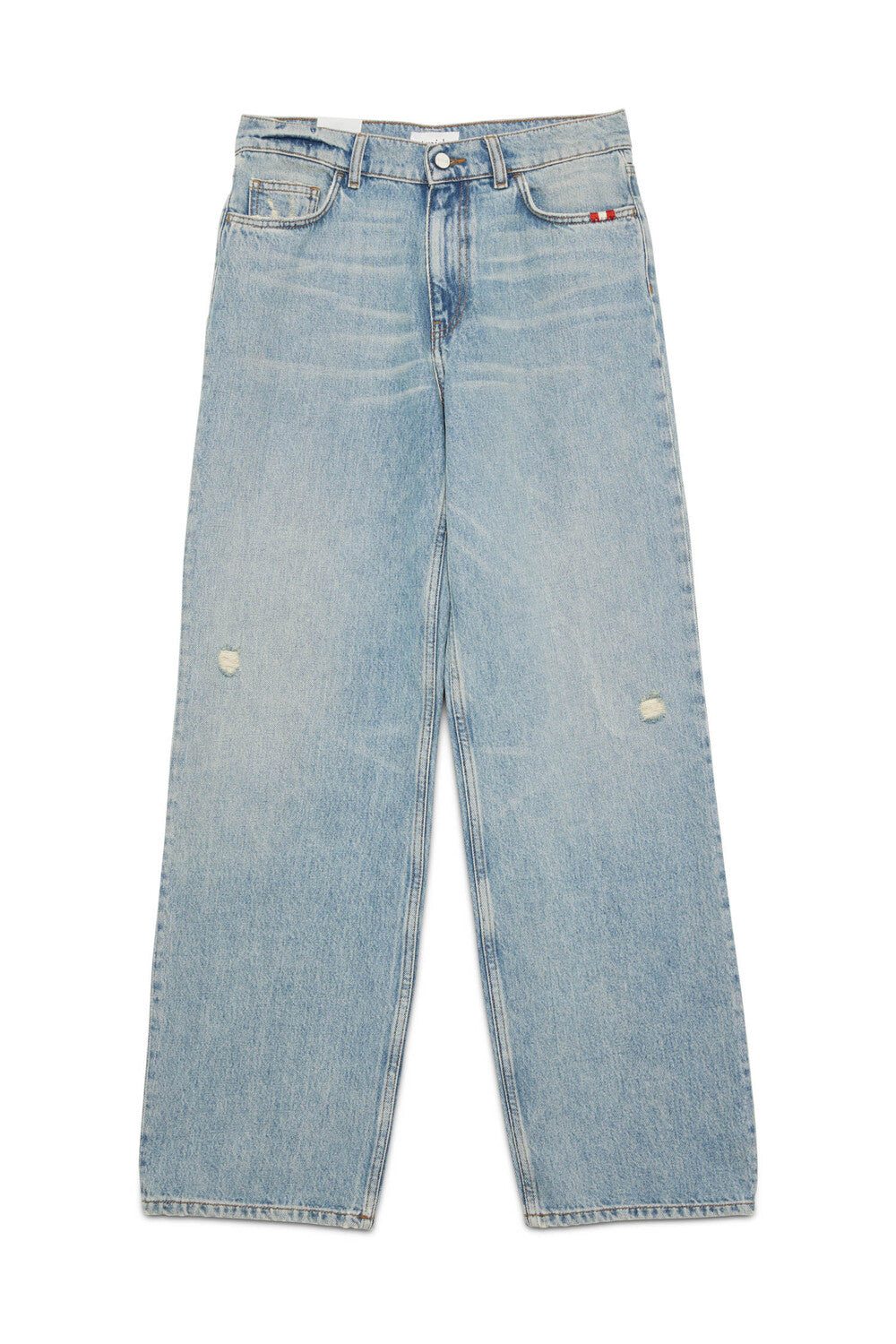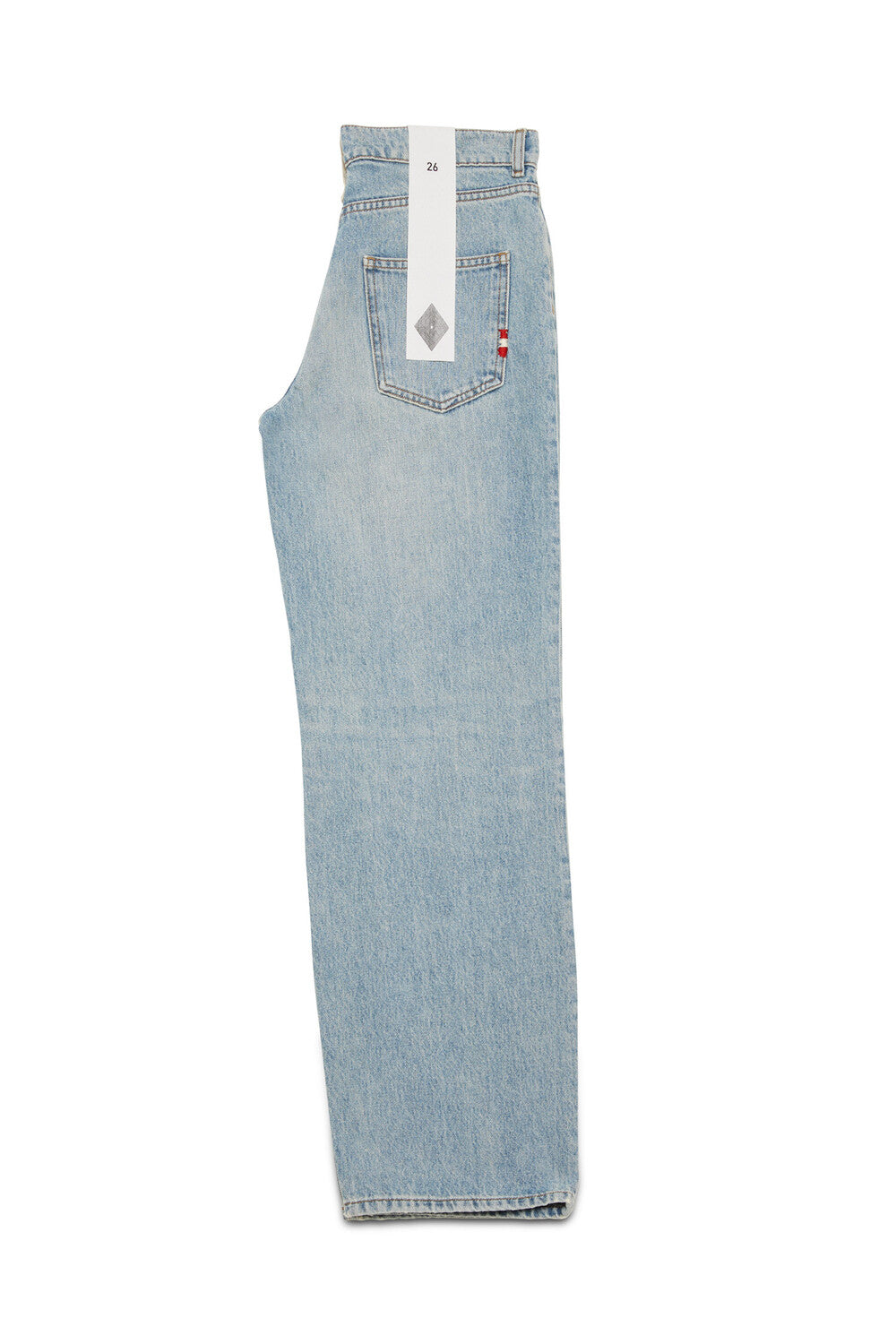 - Denim con lavaggio medio e leggere baffature sul fronte.