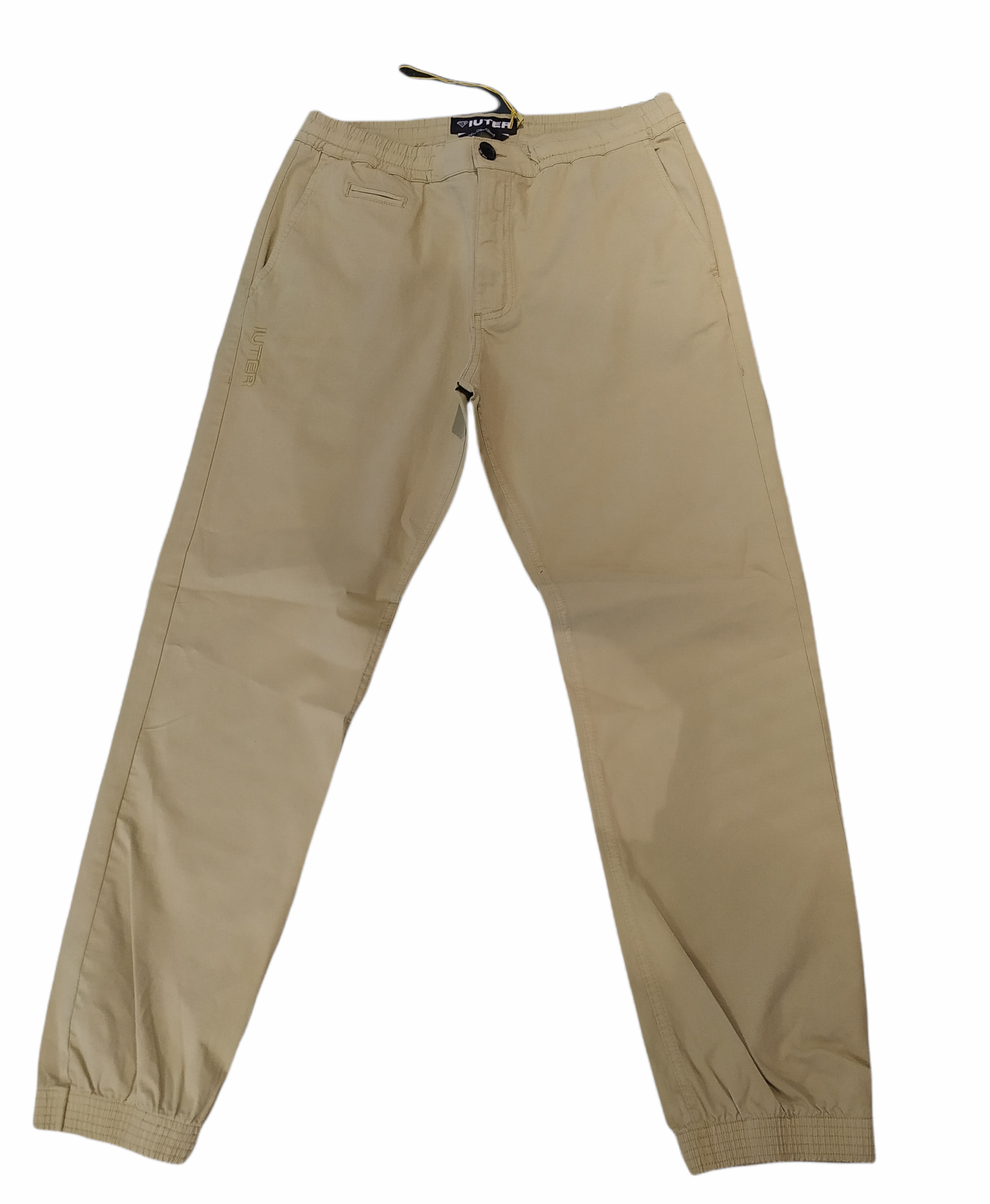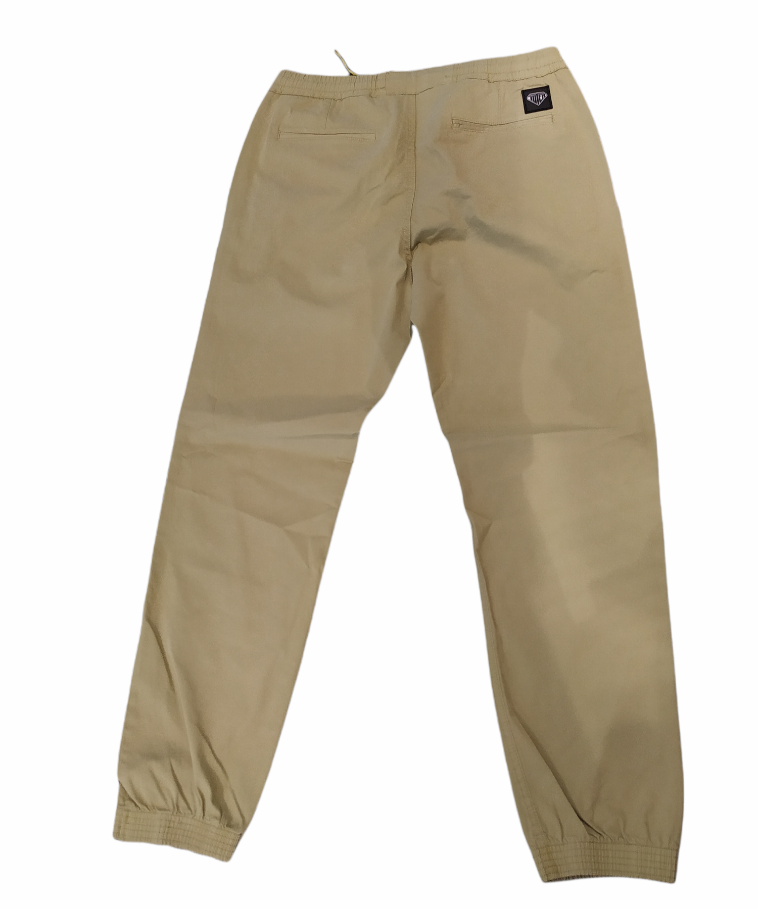 JOGGER Colore BEIGE con logo ricamato, 4 tasche in vita, coin pocket, chiusura con zip e bottone, elastico e coulisse in vita ed elastici alle caviglie. Patch logo sul retro.