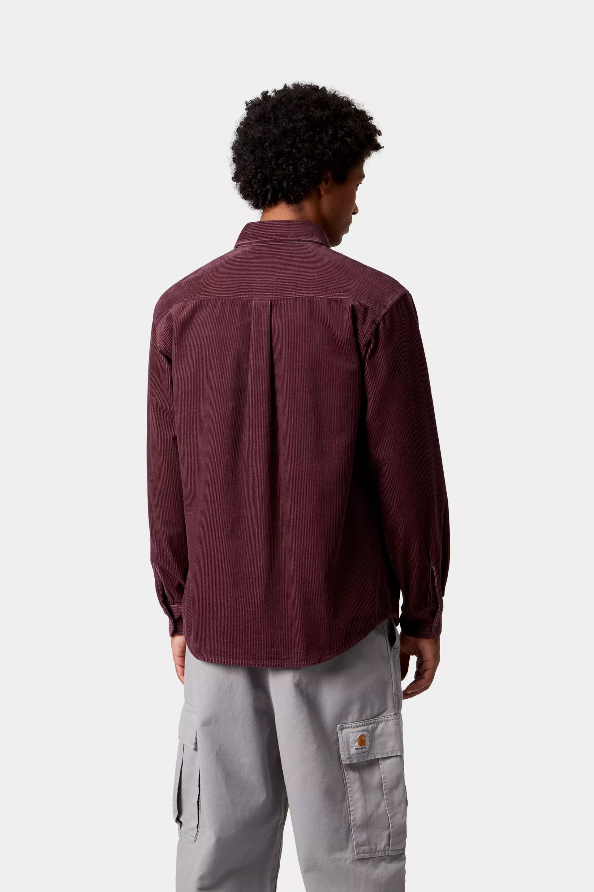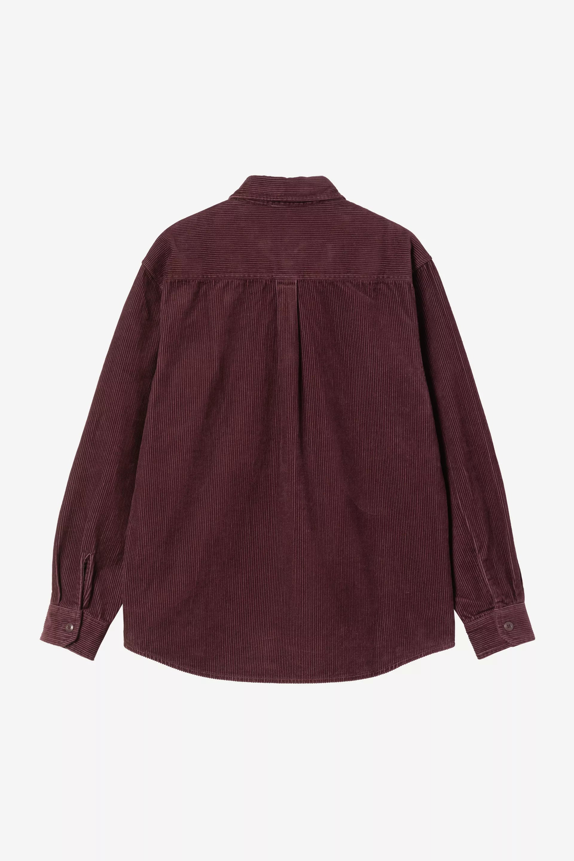 La L/S Flint Shirt è realizzata in pesante velluto di cotone a 8 coste sottoposto a lavaggio per maggior morbidezza. Presenta orlo arrotondato, chiusura anteriore con bottoni, tasca sul petto con bottone e logo in tessuto Carhartt WIP. Vestibilità ampia.