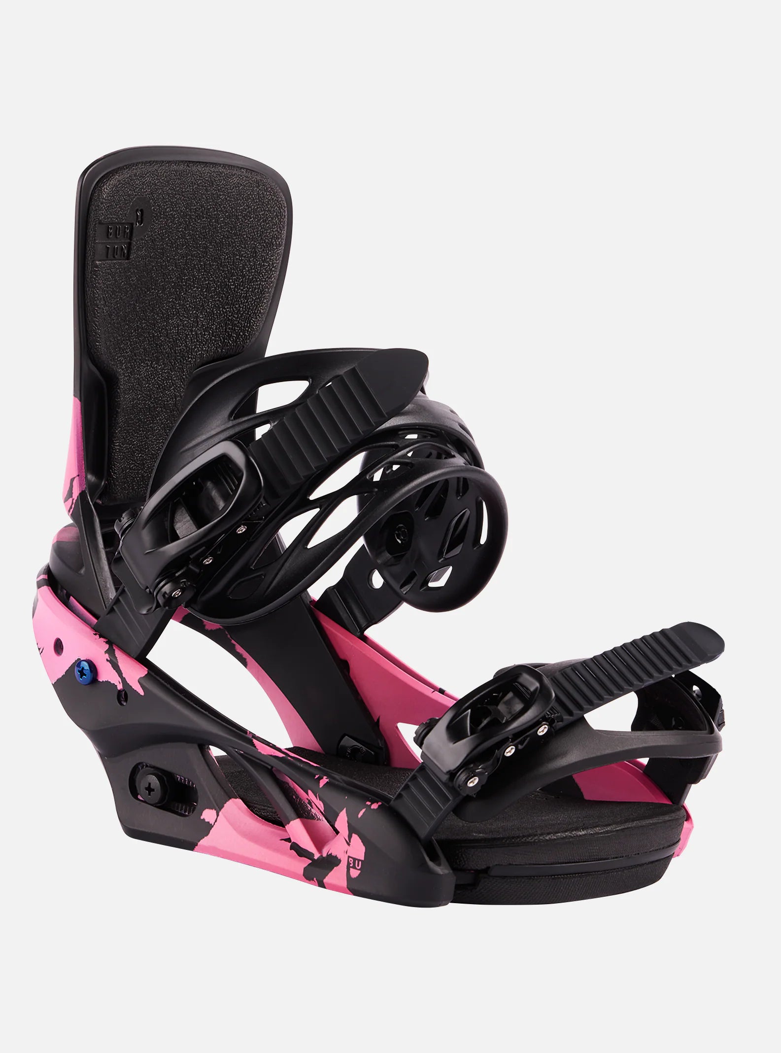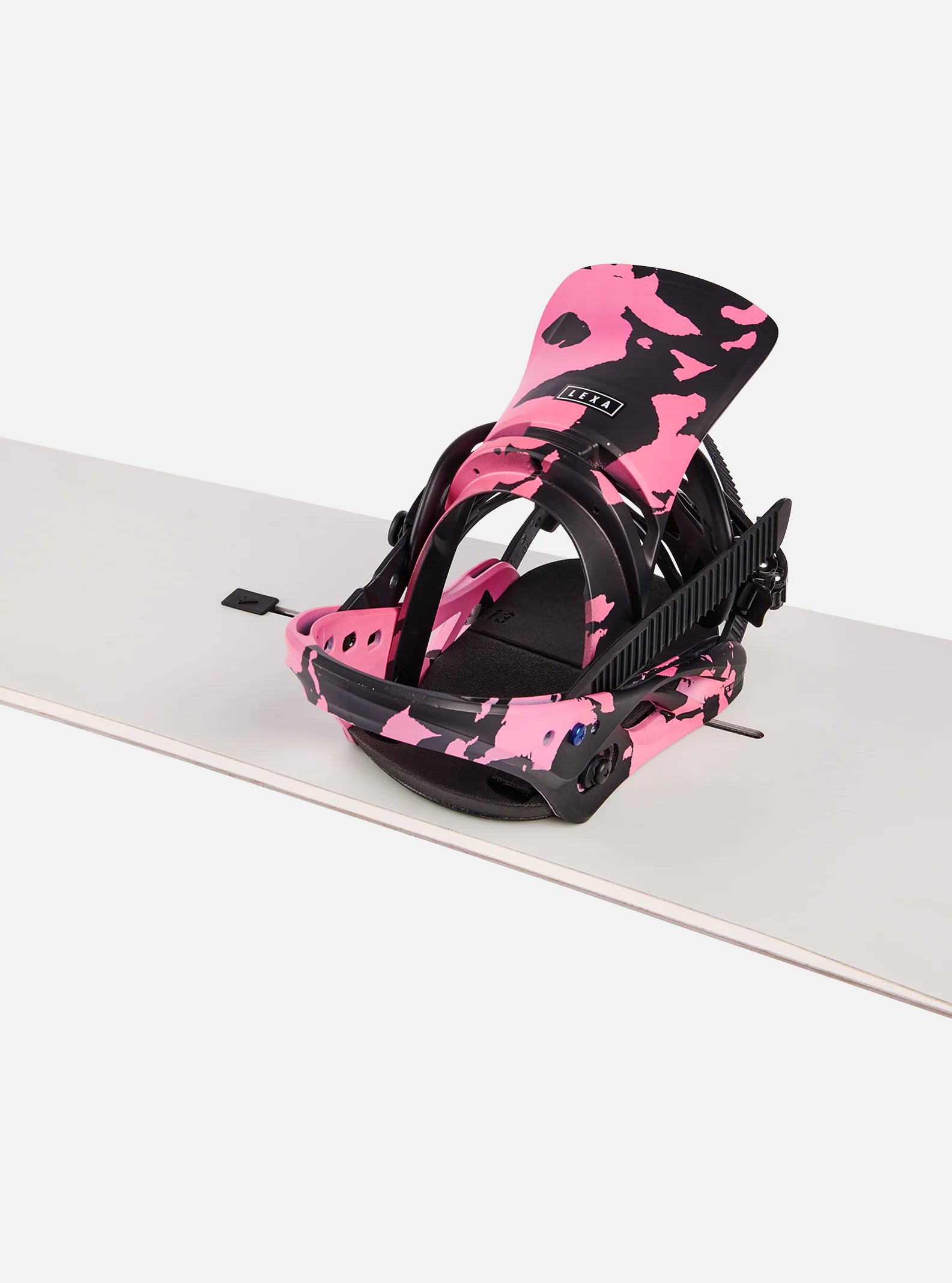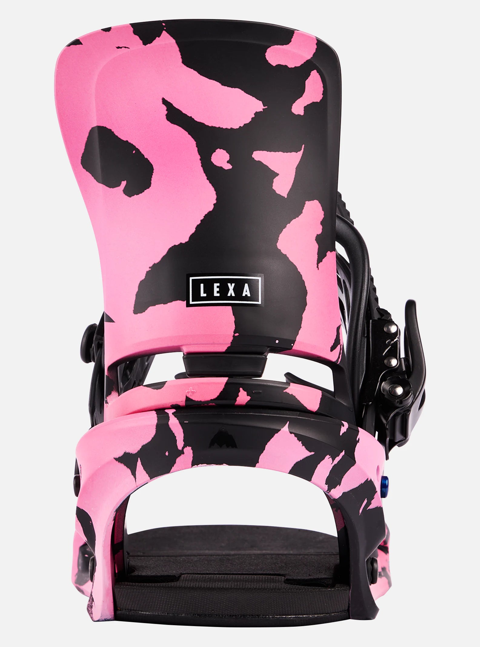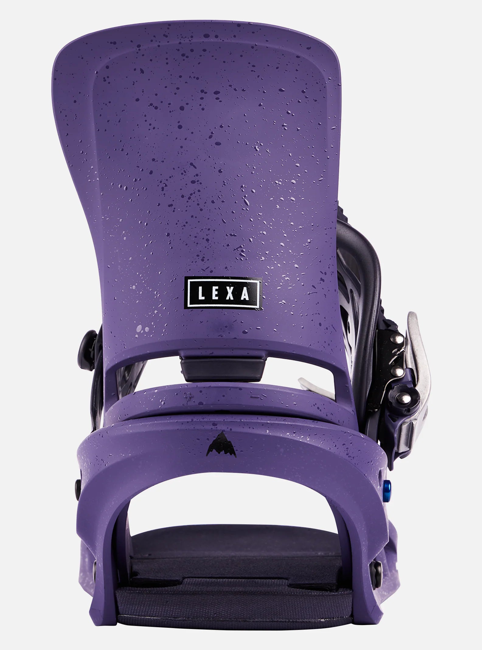 Boasting legendary all-terrain performance, it's no wonder the women's Burton Lexa Re:Flex Snowboard Bindings are a top pick for a whole host of Burton (and non-Burton) pro riders. Experiment with the hi-back's zero forward lean for a more playful feel. Crank the straps for a supportive fit that cradles the foot and works with the hi-back for the consistent, responsive feel that earned this all-mountain binding its pro-level reputation. Re:Flex baseplates are universally compatible with all major mounting systems.