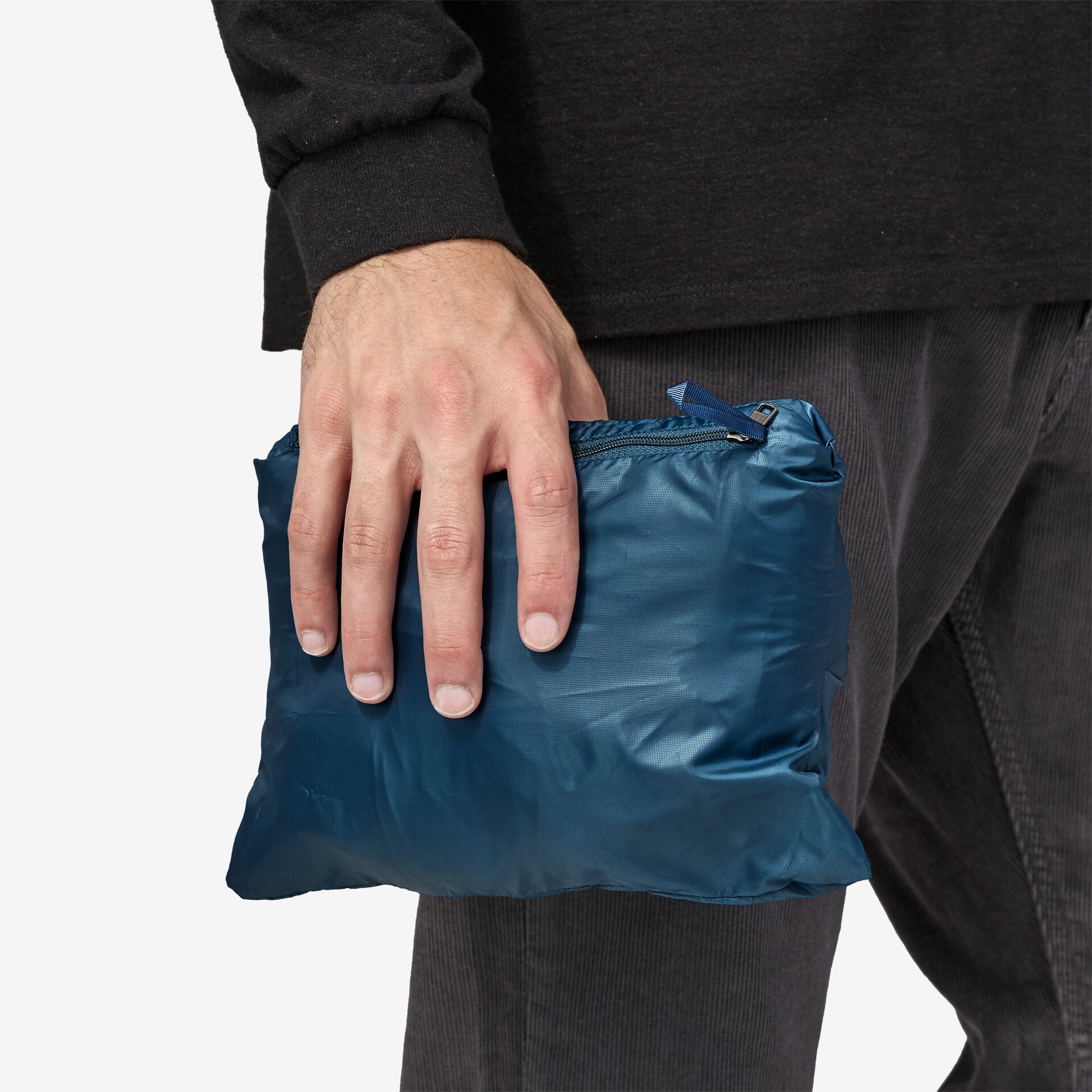 Due tasche scaldamani dotate di zip con alloggio dalla linea essenziale; la tasca interna chiusa da zip sul petto può essere usata come sacca di contenimento in cui ripiegare il gilet ed è dotata di asola interna rinforzata per moschettone