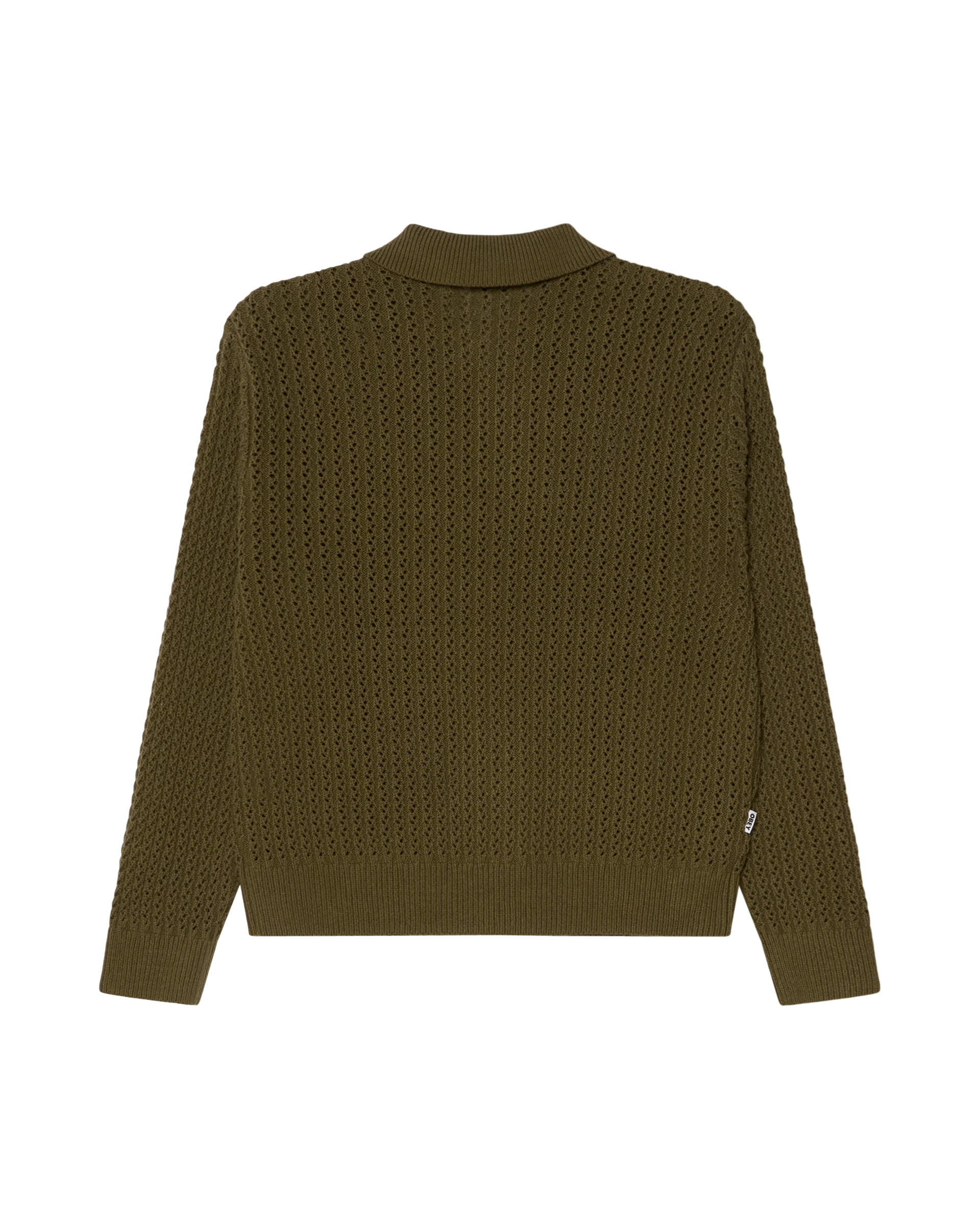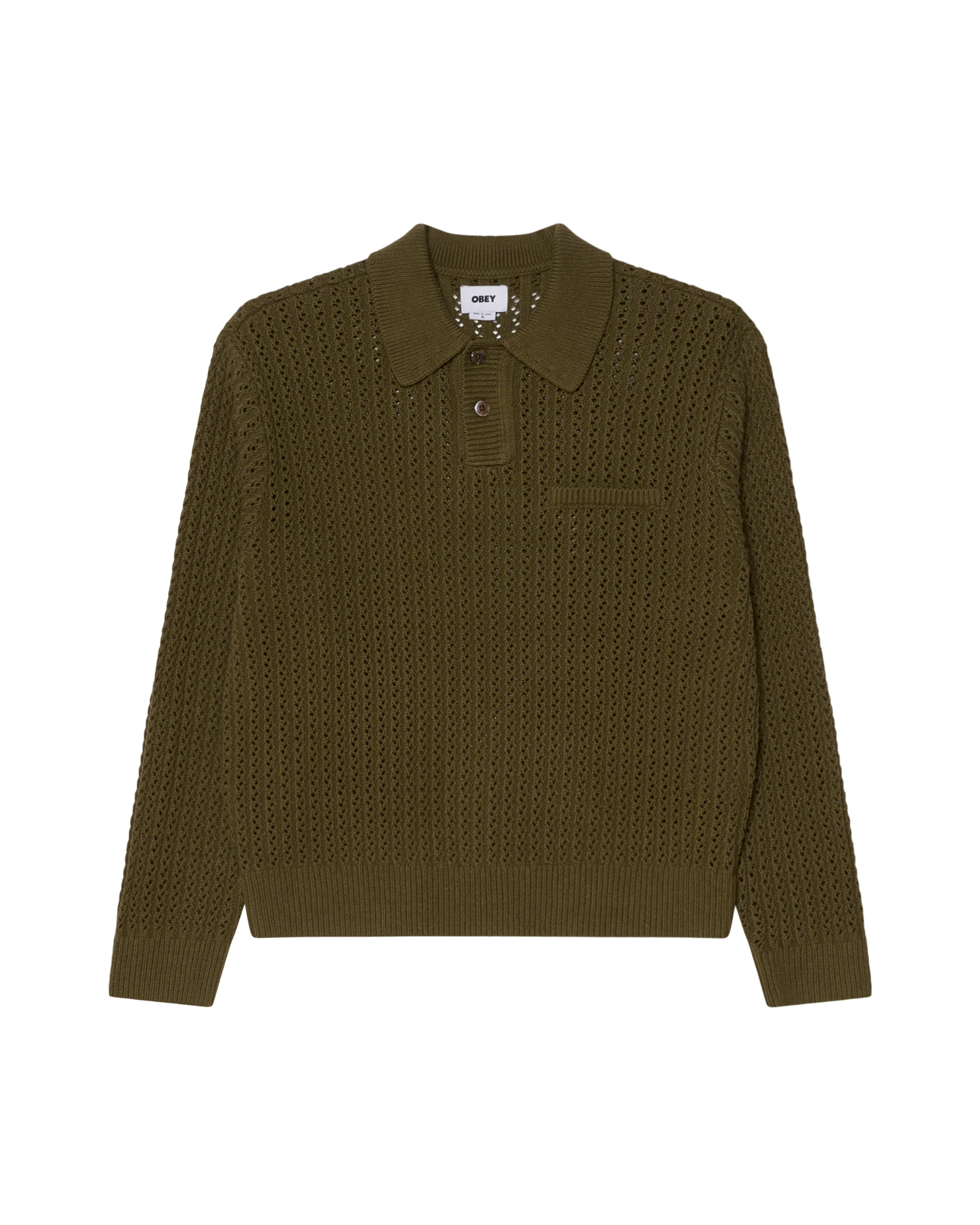 The OBEY Duane Polo Sweater is designed with a ribbed polo collar and button placket, ribbed cuffs and hem, plus a chest welt pocket. Constructed from a 60% cotton and 40% acrylic blend, it offers a relaxed fit and features the OBEY side flag label for a refined finish.