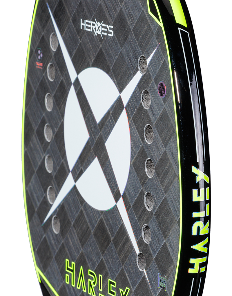 HARLEY 2024 è sviluppata su nuovo telaio Heroe’s 2023 Revenge Evo V2 , HARLEY è stata progettata pensando ai giocatori di fascia medio alta che ricercano nella racchetta la massima precisione. La faccia in Carbon Silver e la EVA Black super soft rendono HARLEY una racchetta indicata per una grossa fascia di giocatori. Il telaio è in carbon tube 100%. Il nuovo design e le tecnologie heroe’s rinnovano questa racchetta, confermando e migliorando le performance ottenute dalla nostra giocatrice Elena Francesconi, vice Campionessa Mondiale 2023.