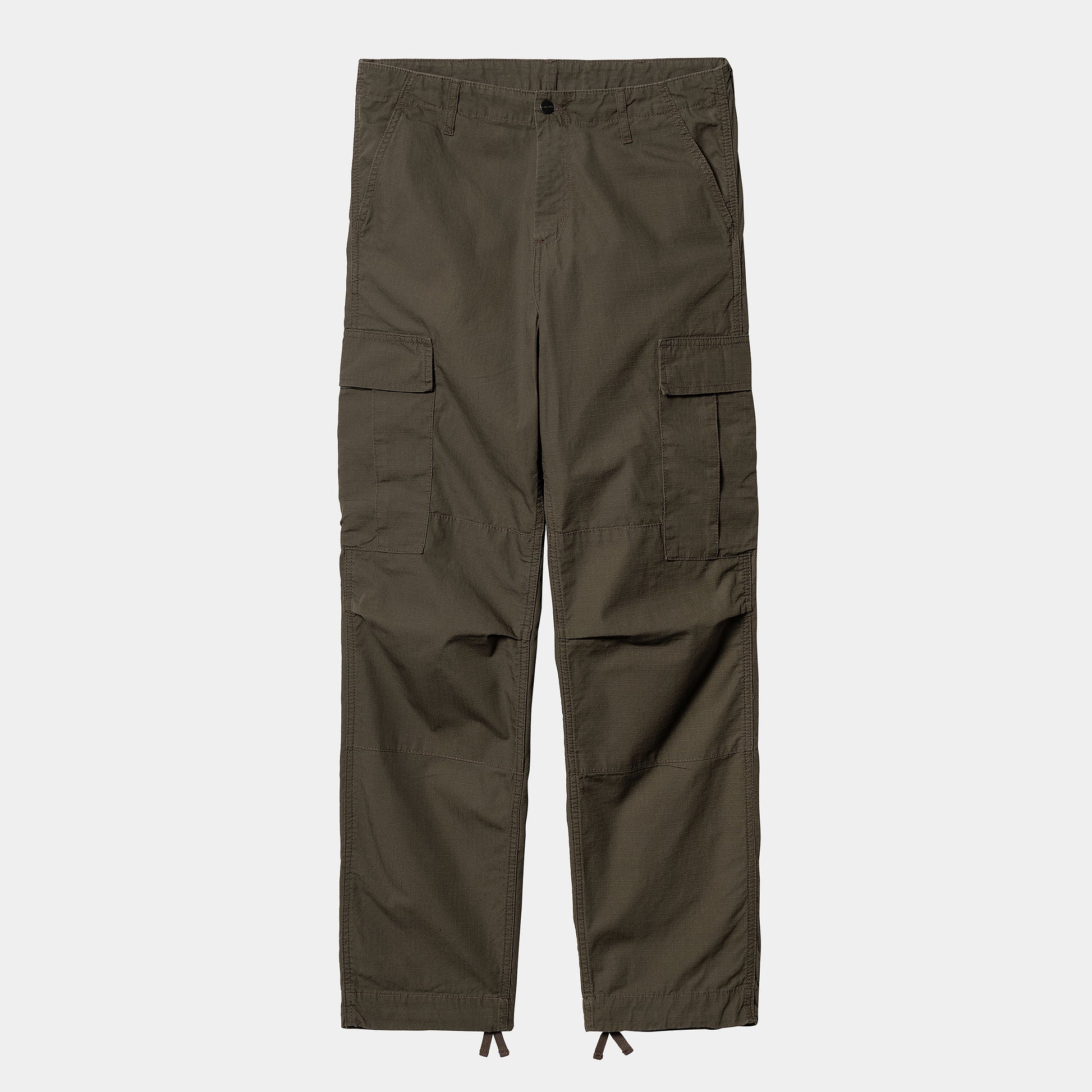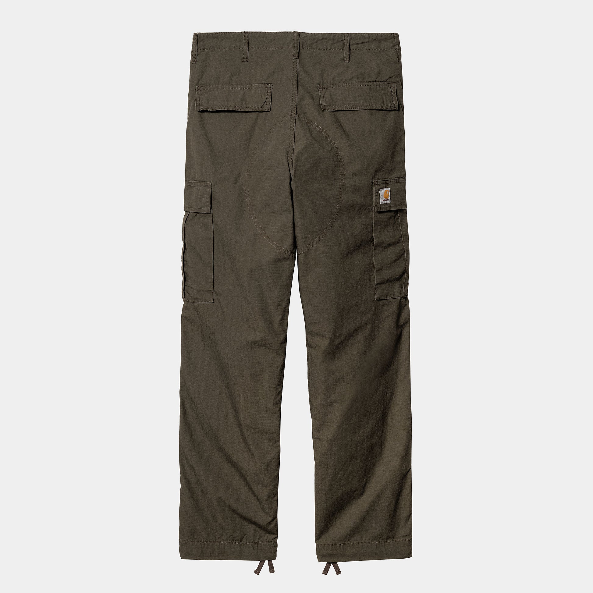 Il Regular Cargo Pant è realizzato in cotone leggero ripstop. Questo tessuto altamente resistente è stato lavato per maggiore comfort senza comprometterne le qualità. Presenta numerose tasche e un'etichetta Carhartt WIP intessuta sulla tasca della gamba destra. Il doppio strato sul ginocchio ne accentua le qualità di resistenza, mentre il laccetto sull'apertura della gamba consente di modellare la vestibilità. Regular fit.