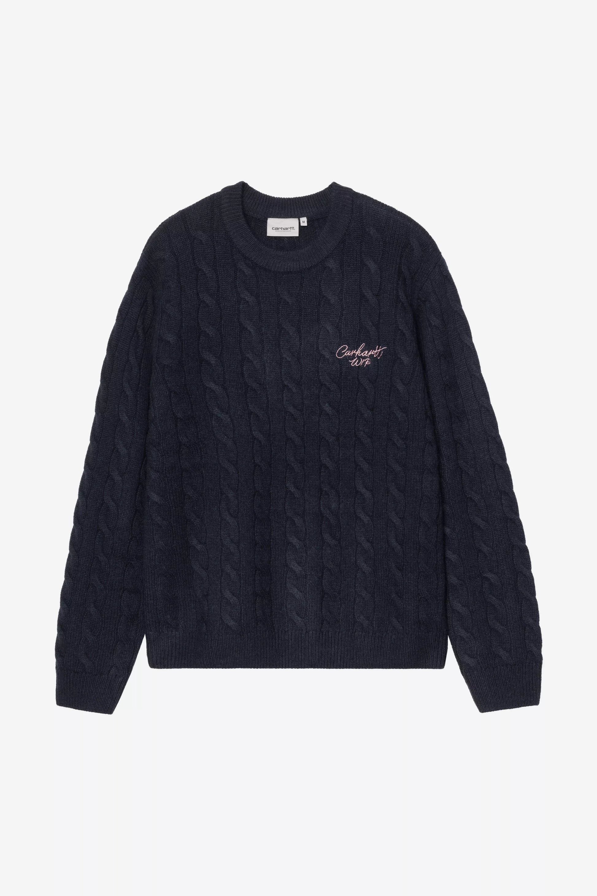 La Signature Sweater è una pesante maglia con motivo a trecce realizzata in un misto di lana di agnello. Sul petto campeggia un ricamo grafico.