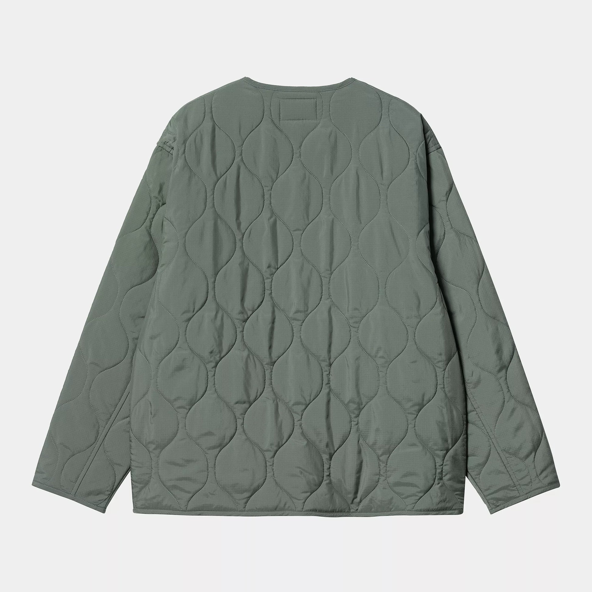 La Skyton Liner è realizzata in poliestere ripstop riciclato ed è dotata di una fodera in poliestere con trapuntatura a cipolla. La giacca presenta inoltre scollo senza colletto e chiusura con bottoni automatici. Il capo è caratterizzato da tasche sul davanti e impreziosito da un’etichetta quadrata in tessuto.