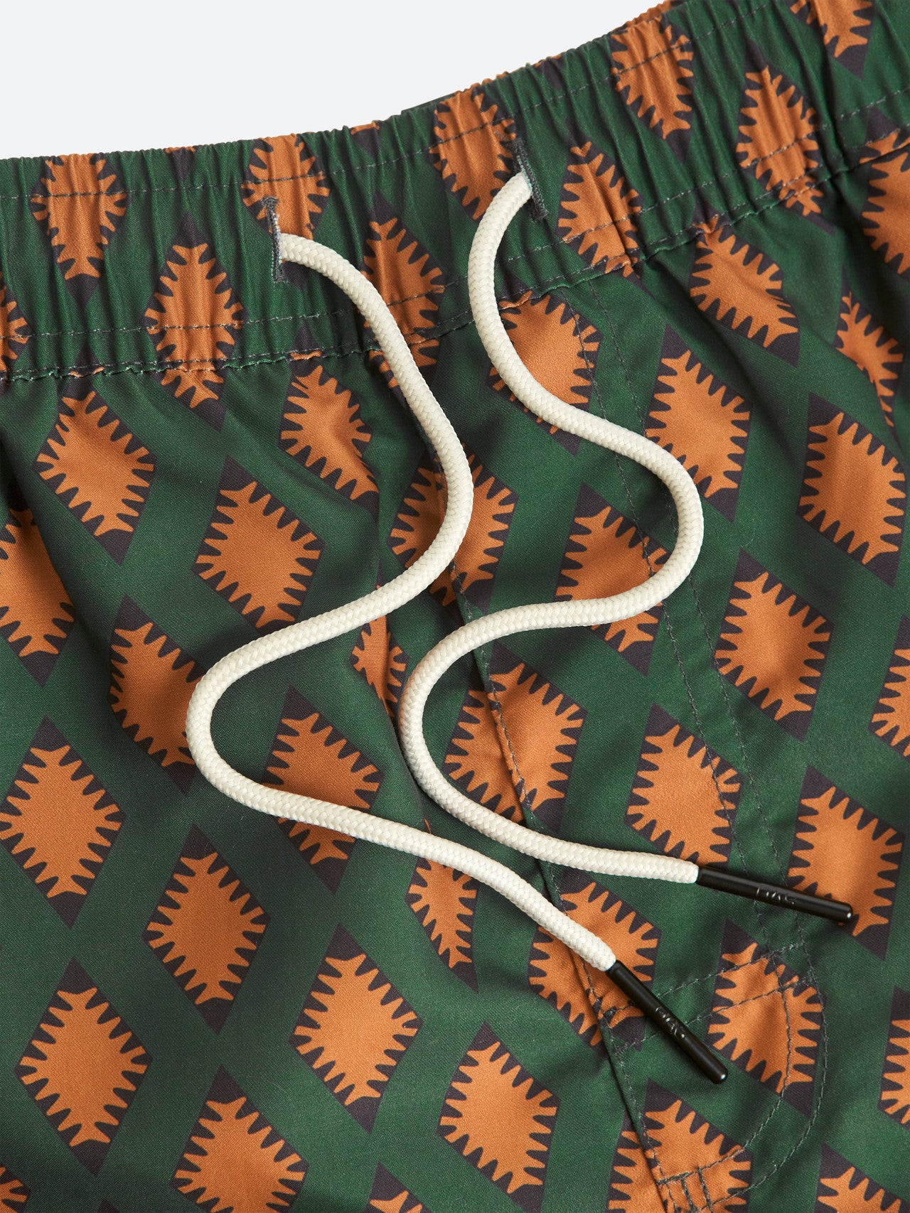 With their forest green and muted orange in a patched diamond pattern, these swim shorts give you a patched look. The quick-drying pair of swim shorts are designed with four pockets including a hidden zip pocket on the side and a mesh lining. Striving for uncompromised comfort and style, the swim shorts are lightweight, true in size, and have a peach finish.