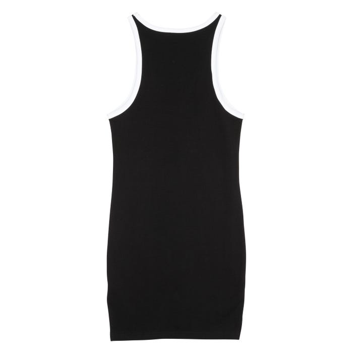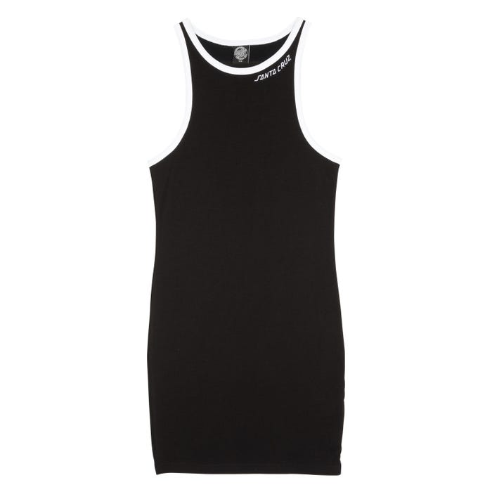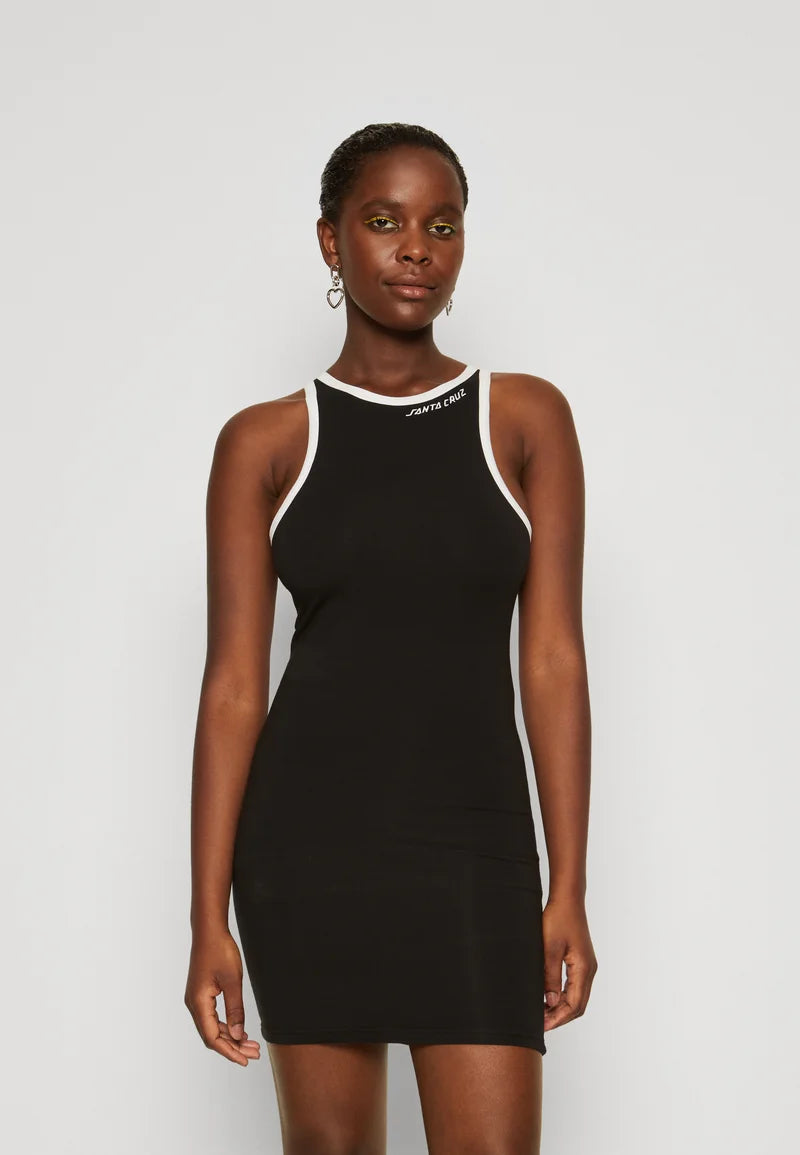 98% cotton, 2% elastane, 220gsm interlock jersey, fitted tank dress with left neckline embroidery, green flowers with all over print