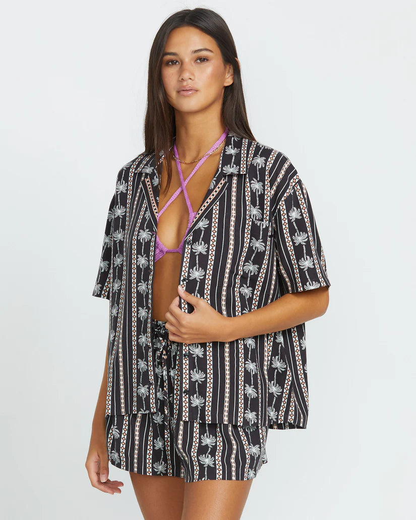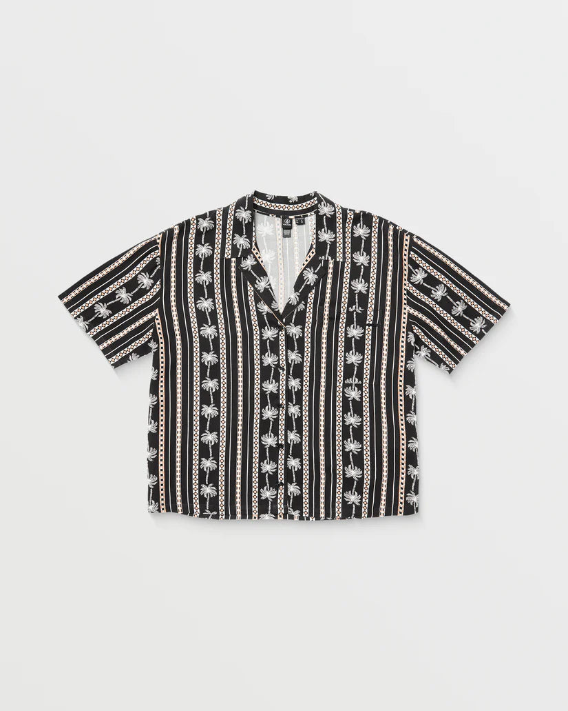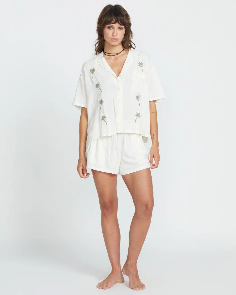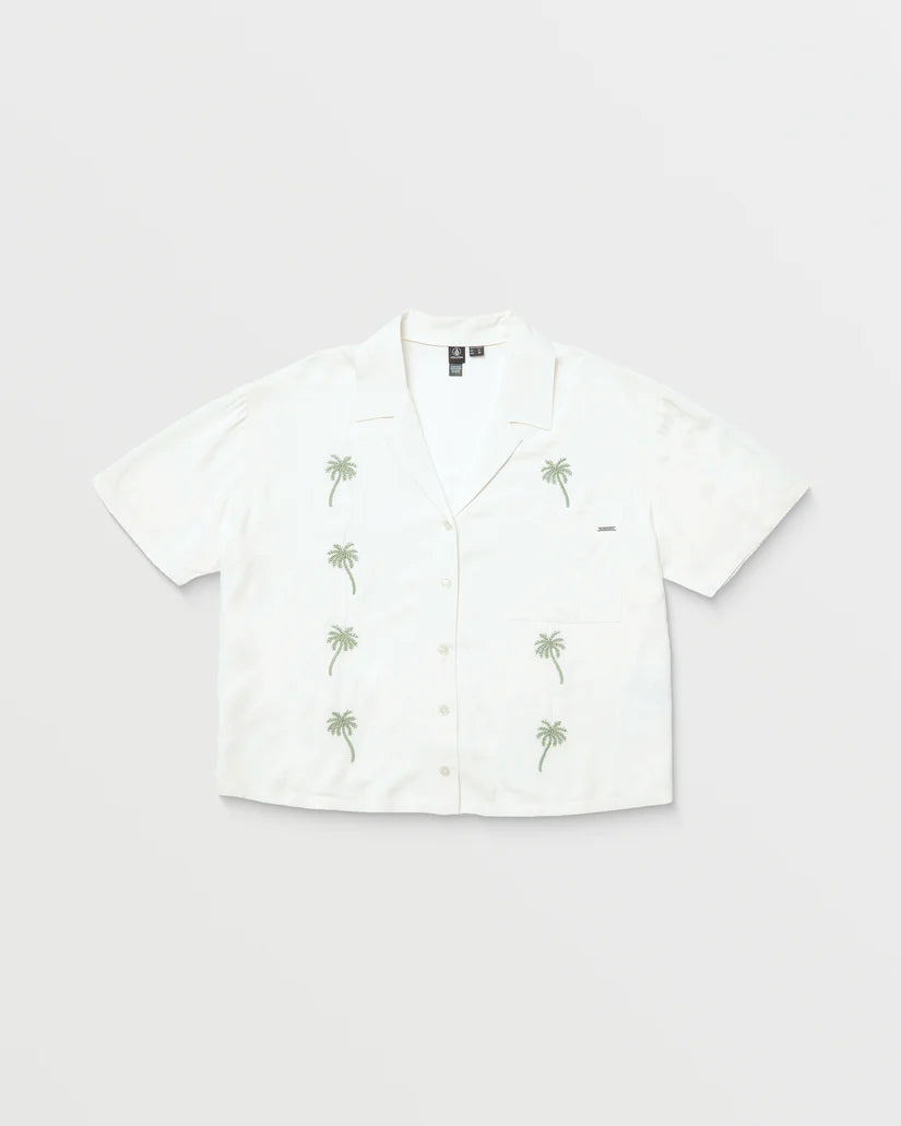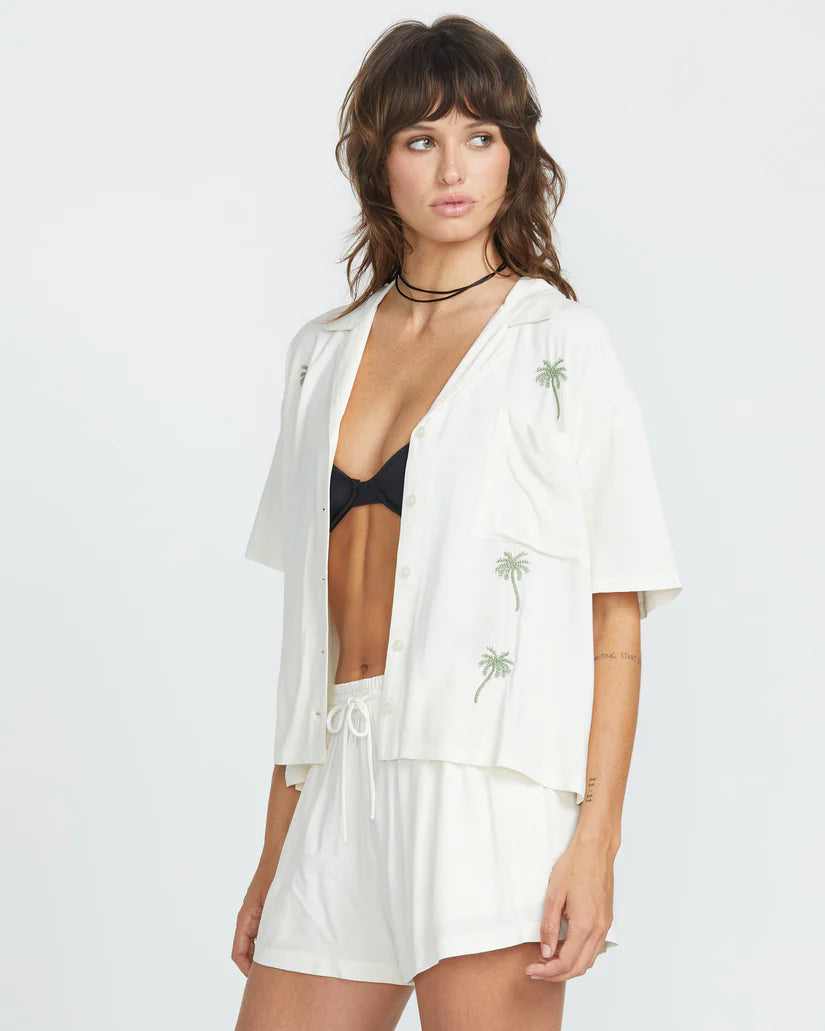 Breezy viscose slub meets tailored style in this tropics-inspired button-front. Embroidered palm trees usher in endless summer vibes, while a relaxed, boxy cut and textured material keep you cool and comfortable. Vacation, meet versatility.