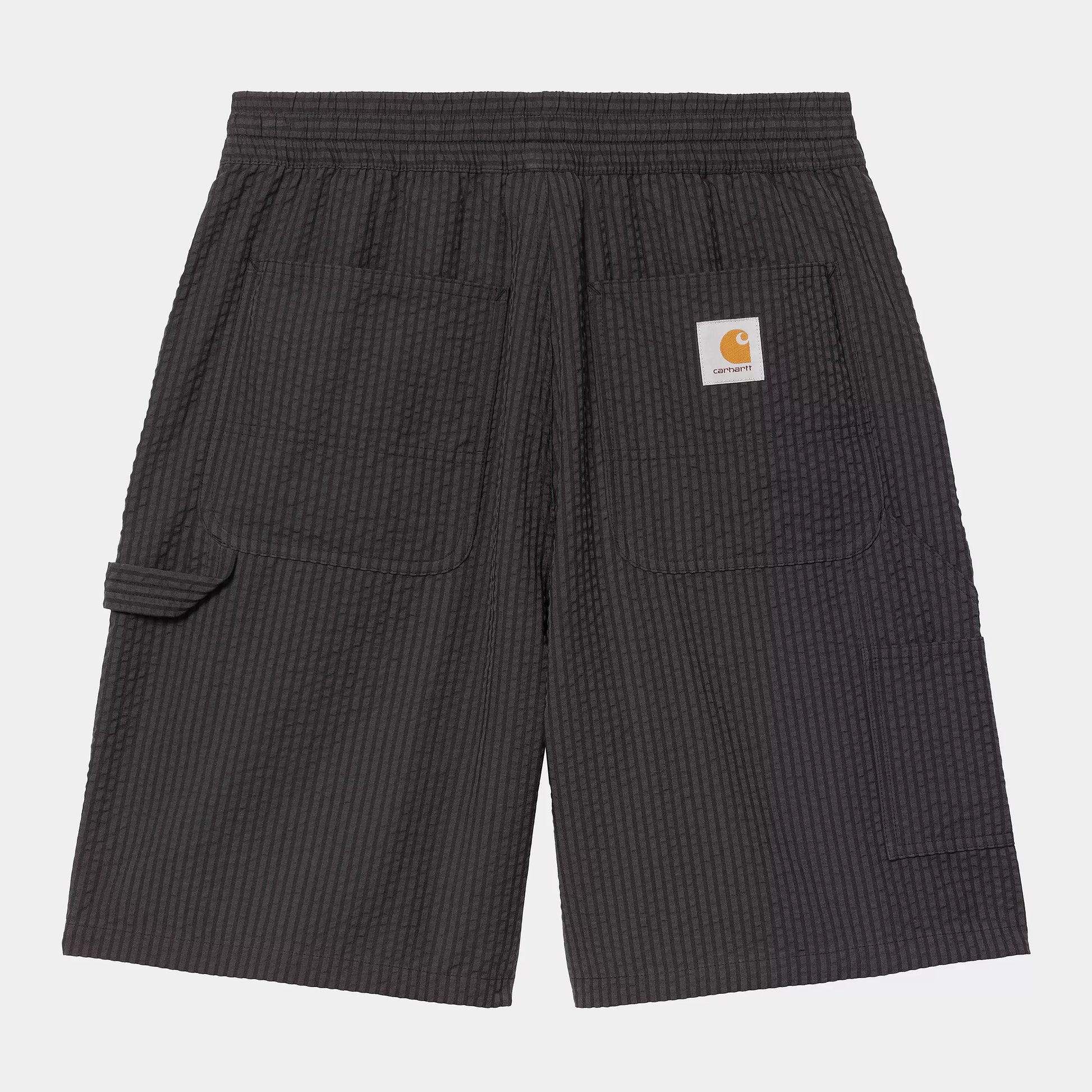 I Toland Short sono realizzati in leggero cotone seersucker testurizzato con discrete righe allover e caratterizzati da vestibilità normale. I pantaloni sono dotati di elastico in vita con coulisse regolabile. L’impuntura a travetta nei punti di maggior usura, le tasche porta-attrezzi e il passante portamartello accentuano il carattere funzionale del modello. La tasca posteriore è impreziosita da un’etichetta quadrata in tessuto.