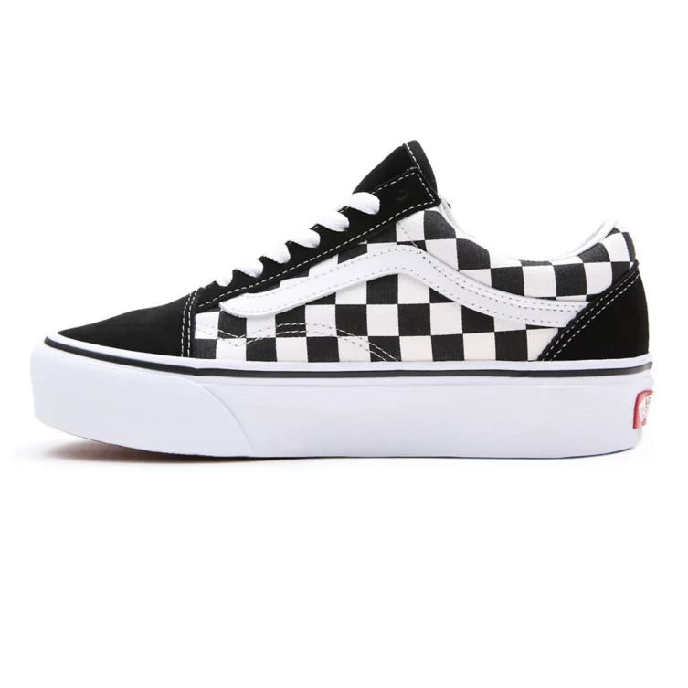 La Old Skool Platform combina la classica scarpa da skate con banda laterale con una tomaia robusta in tela e pelle scamosciata, una punta rinforzata resistente all'usura, collo imbottito per supporto e flessibilità, e l'originale suola waffle in gomma con plateau.
