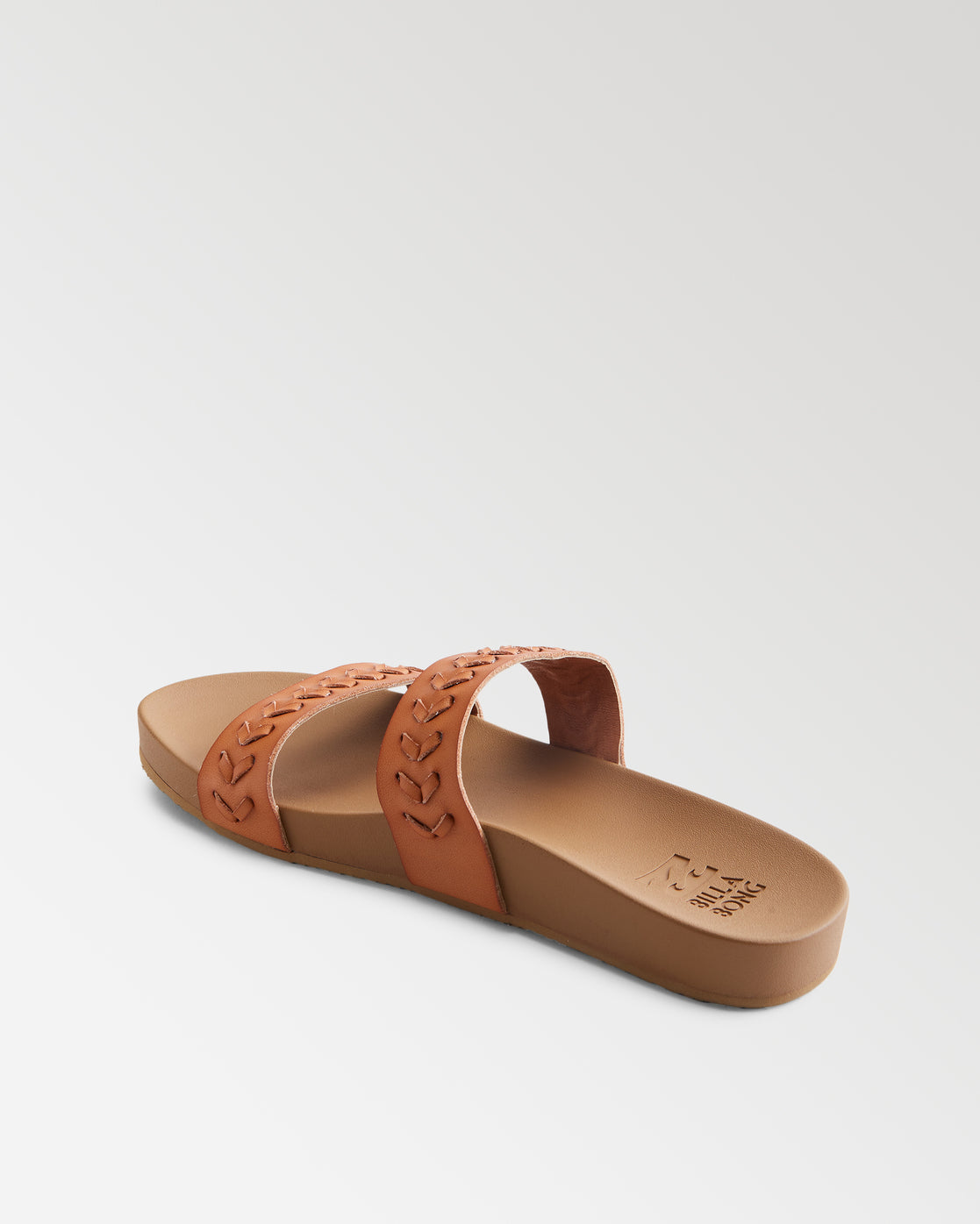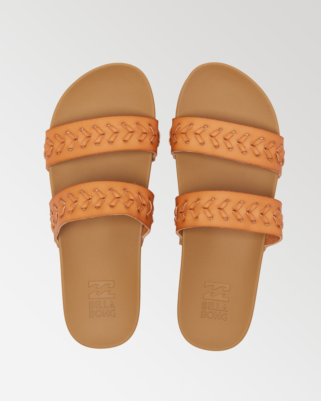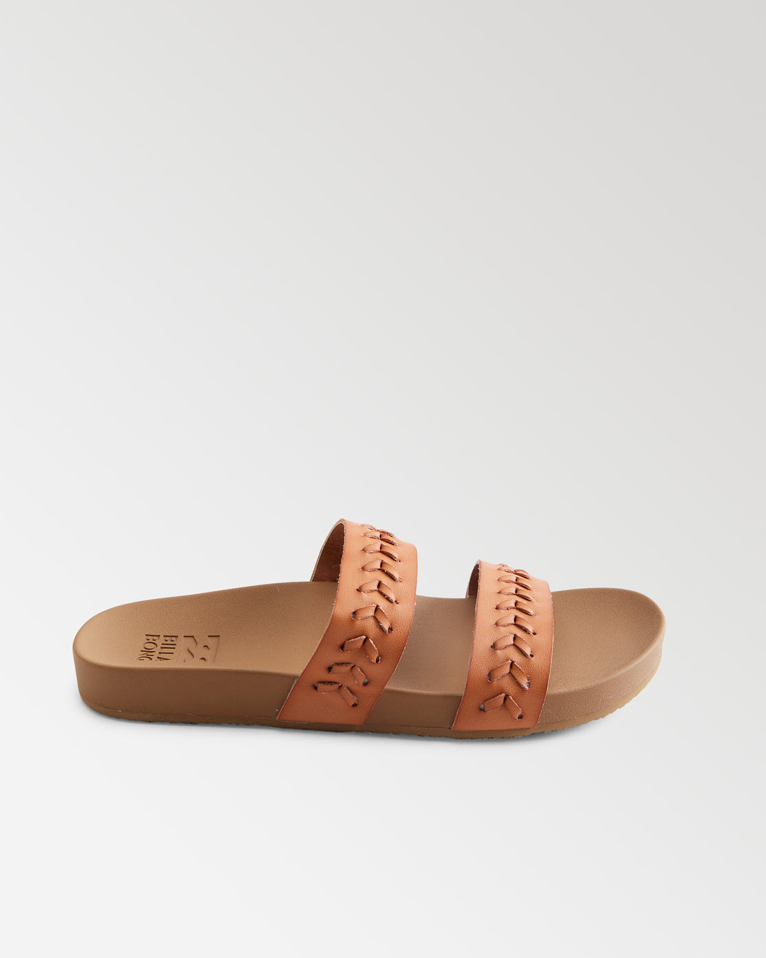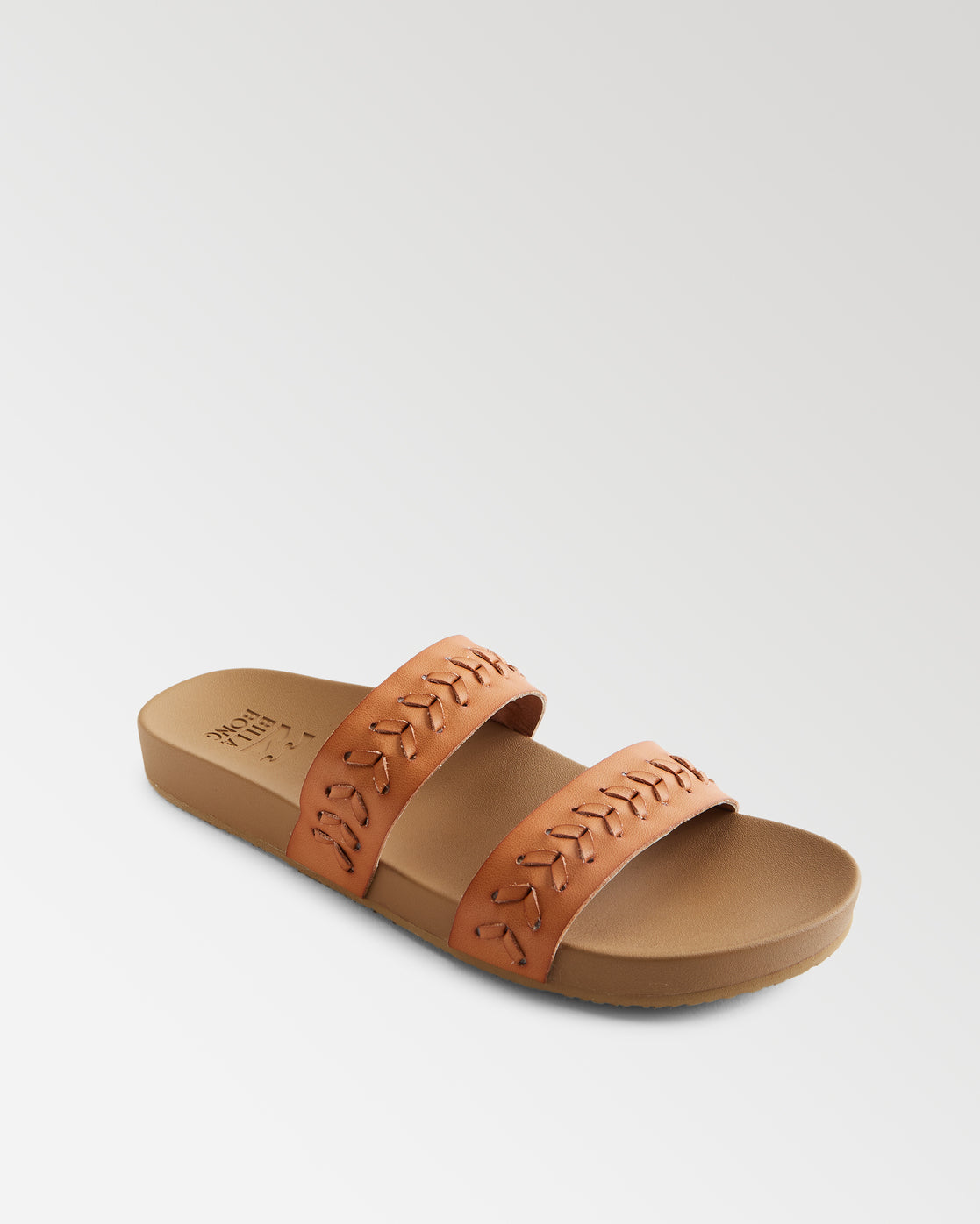 Tomaia: ciabatta con doppia fascia pelle vegana e dettaglio incrociato