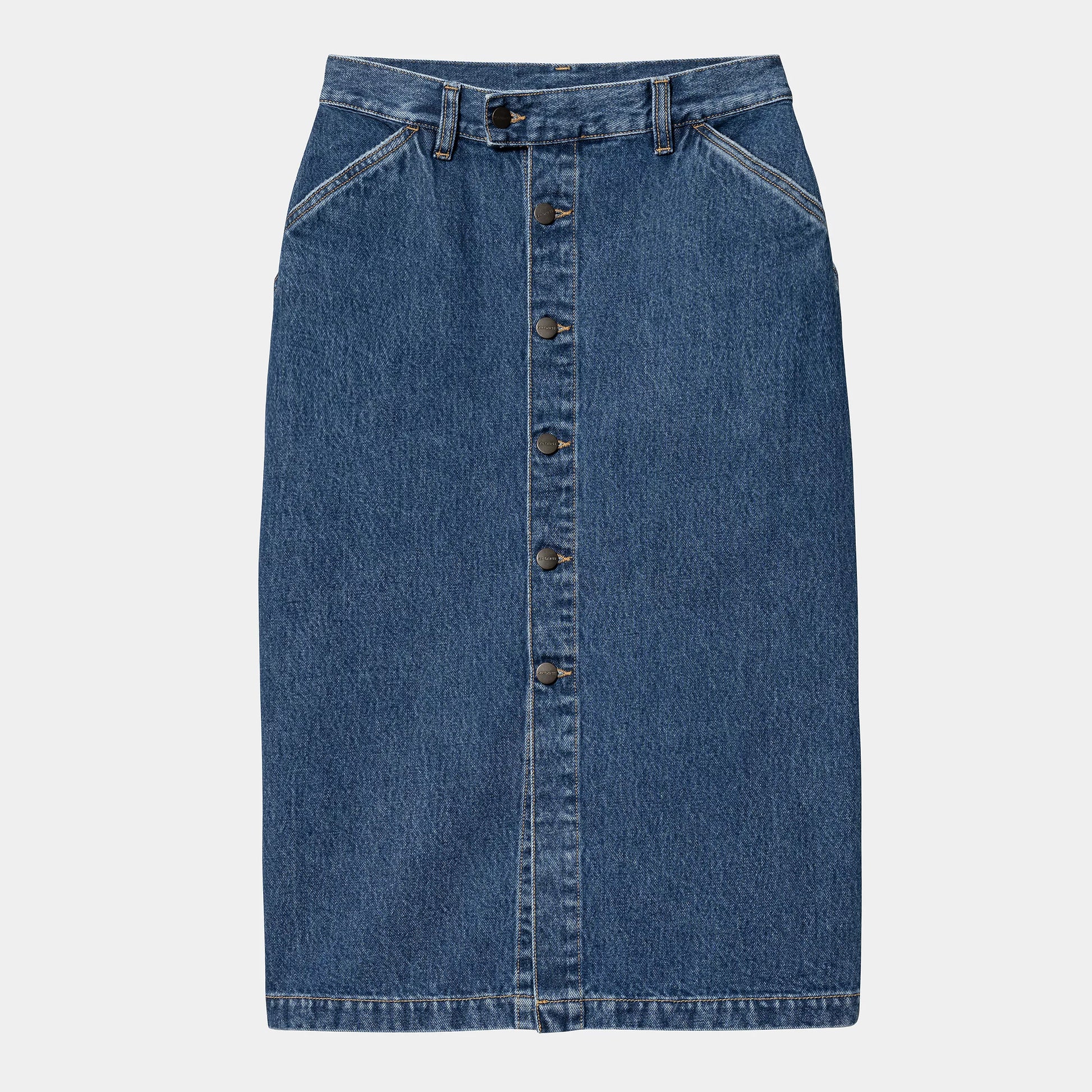 La Women's Colby Skirt è realizzata in pesante denim di cotone e caratterizzata da vestibilità dritta e vita alta. La gonna è disponibile nella versione sottoposta a lavaggio normale e con pietre abrasive, quest’ultima per maggior morbidezza e un particolare aspetto consunto. Sul davanti è caratterizzata da bottoni in metallo con logo, sul dietro compare invece un inserto cucito. Rifinisce il modello un’etichetta quadrata in tessuto.