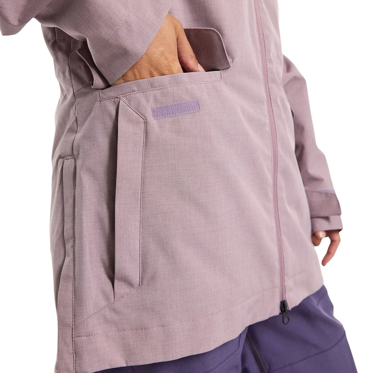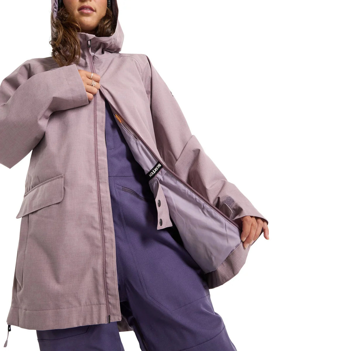 Don't let the clean exterior of women's Burton Lalik Jacket fool you. This waterproof, breathable shell is packed with rider-designed features to keep you comfortable while riding and on the lift, so you can keep coming back for more. Pit zips and a temperature-regulating liner let you ride in comfort without freezing on the lift. A good selection of pockets including an insulated pocket for your phone make sure you have a place for the stuff you lie to keep within reach. You can cinch the waist for a more snug fit and a subtle style change.