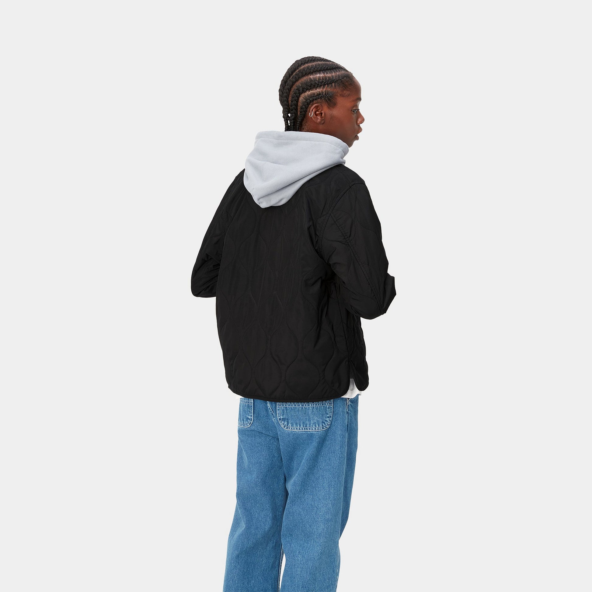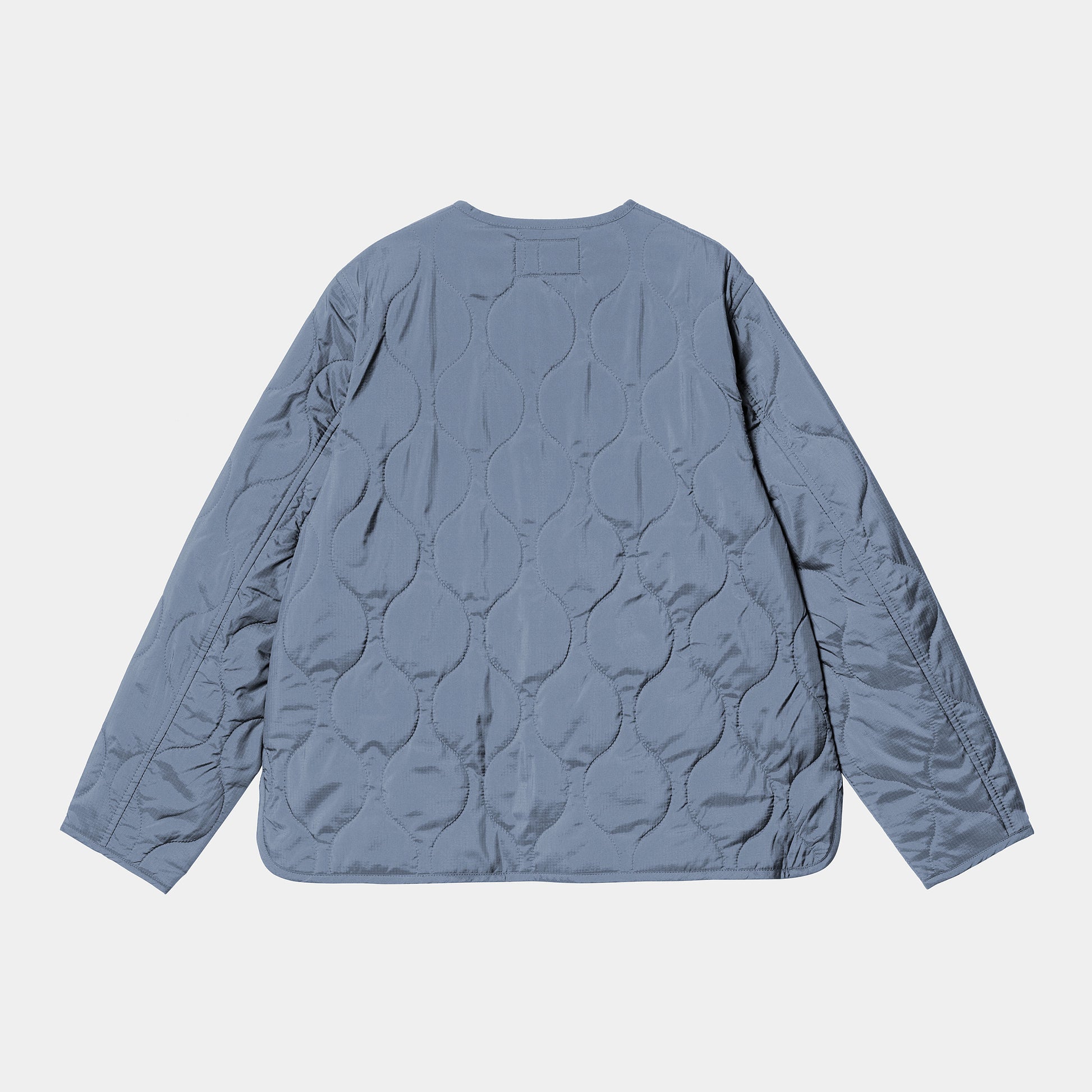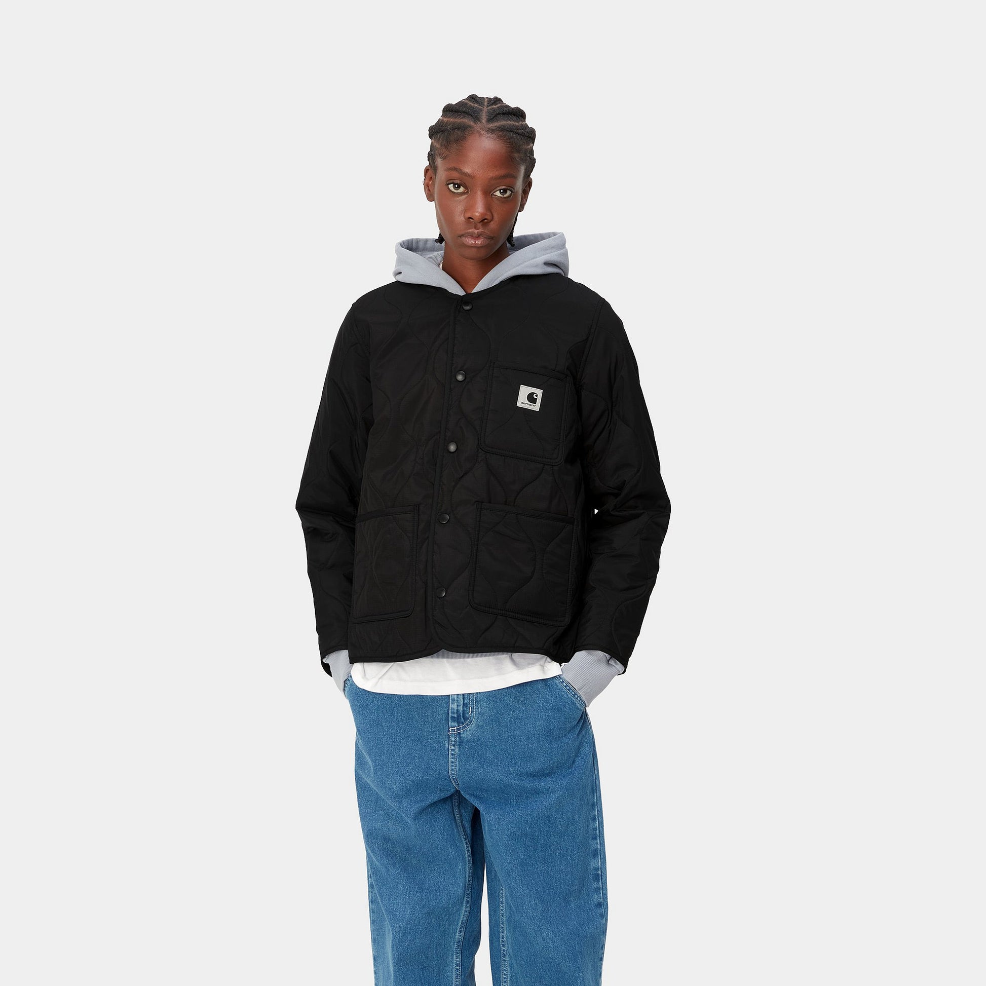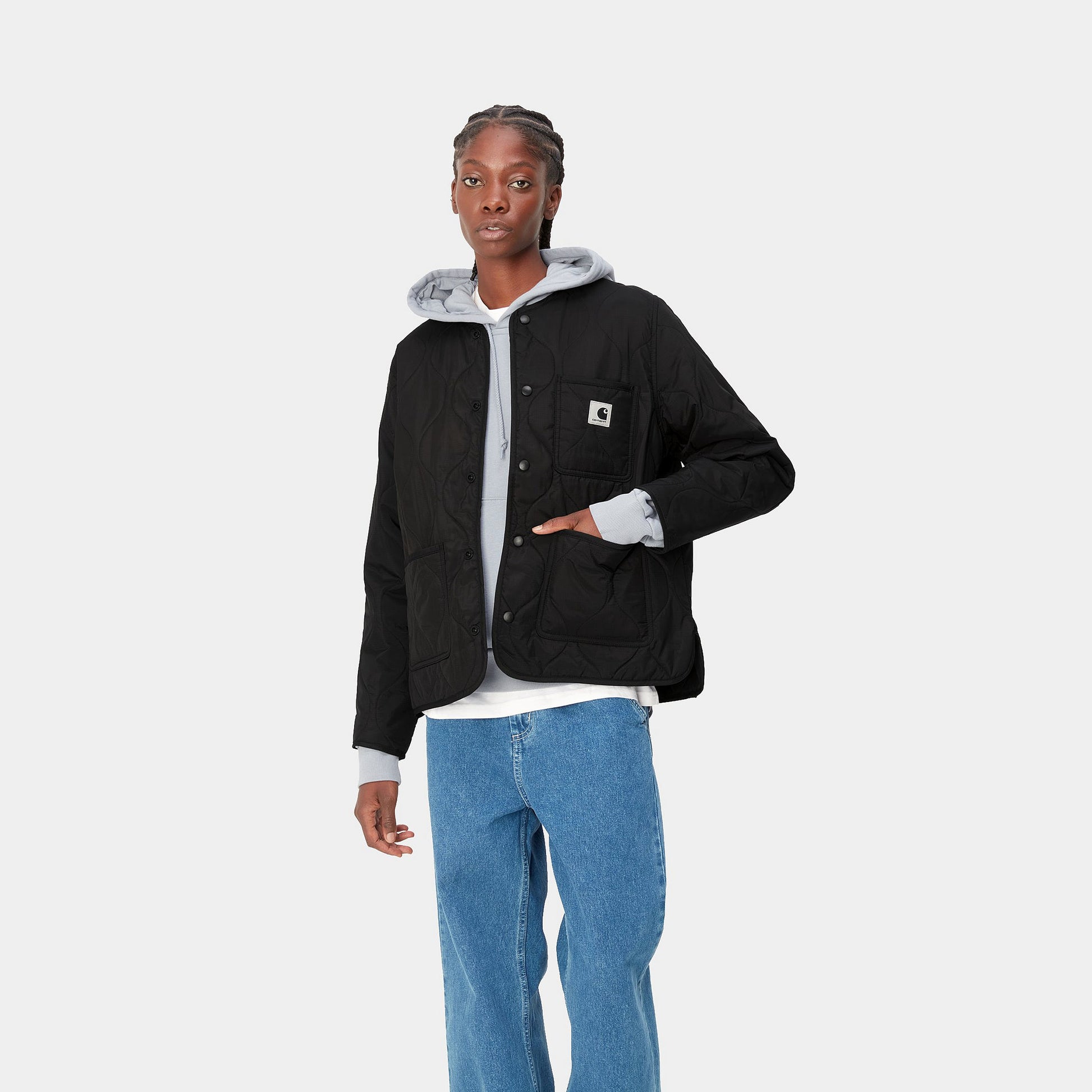 La Women’s Skyler Liner è realizzata in poliestere ripstop riciclato da 62 grammi e presenta una fodera in poliestere con trapuntatura a cipolla. Il capo è senza colletto e presenta chiusura con bottoni automatici. A rifinire il modello, tre tasche anteriori, una delle quali impreziosita da un’etichetta quadrata in tessuto.